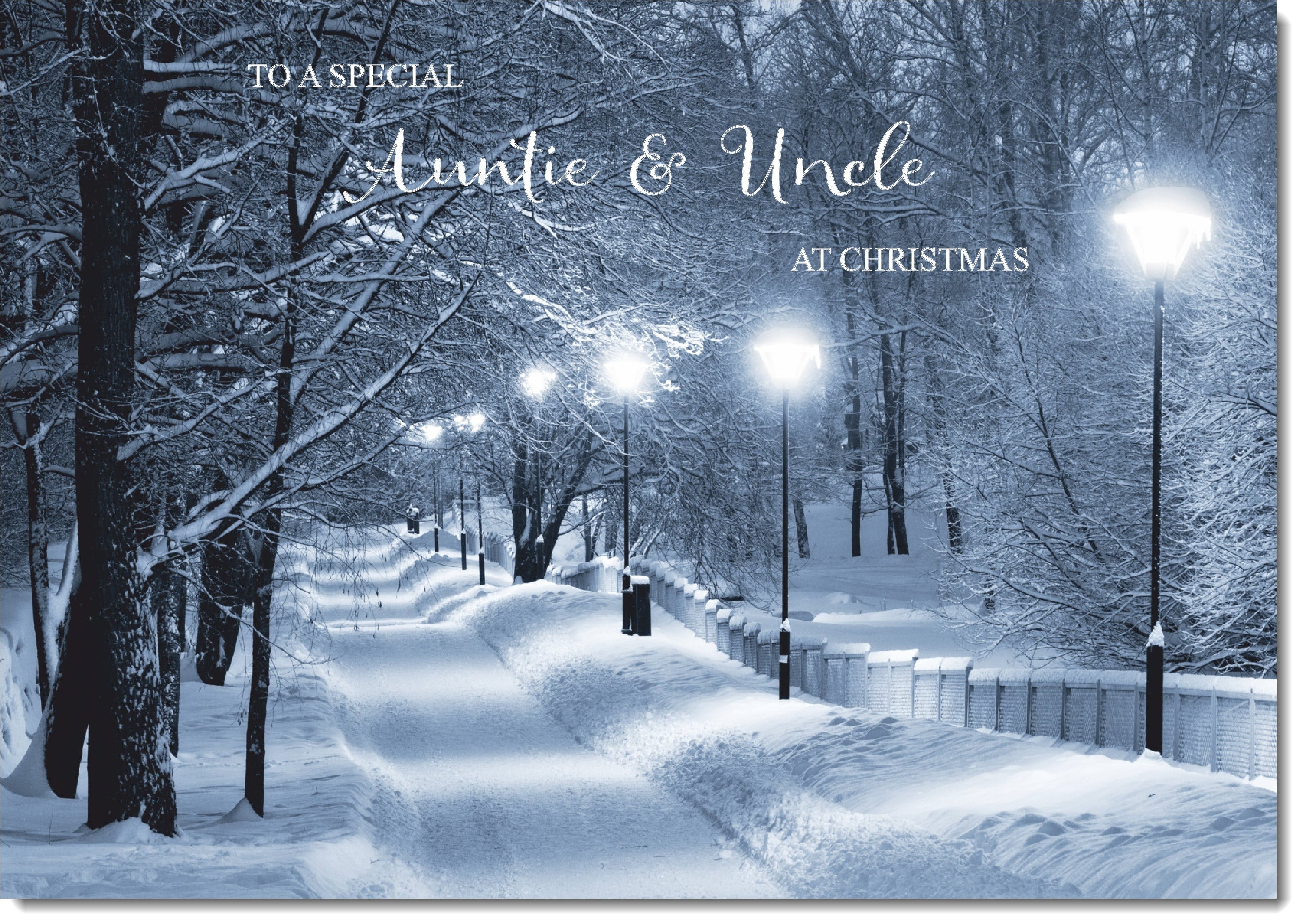 Auntie & Uncle Christmas Card Snowy Street Scene