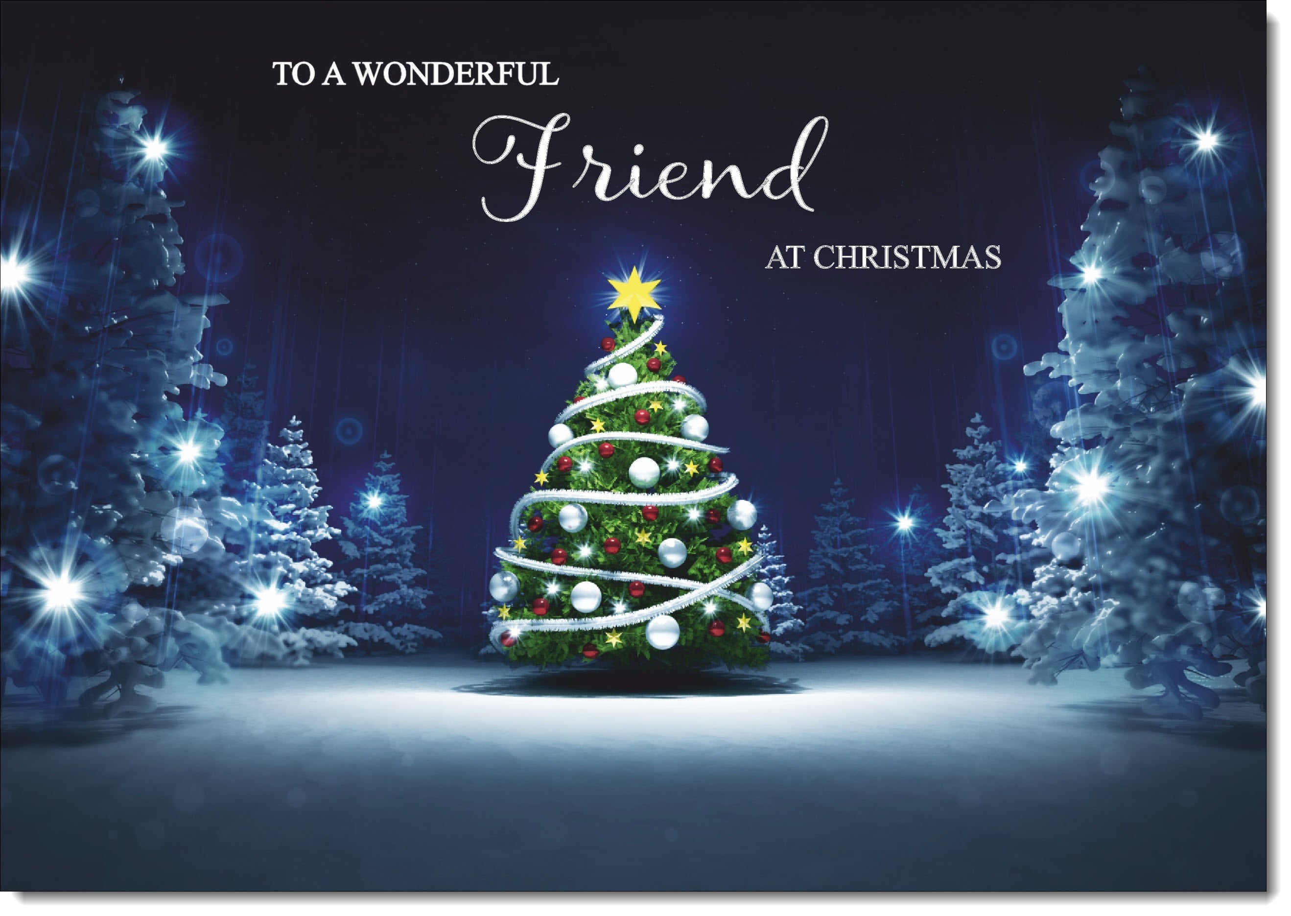 Friend Christmas Card Christmas Tree Lights in Dark Sky