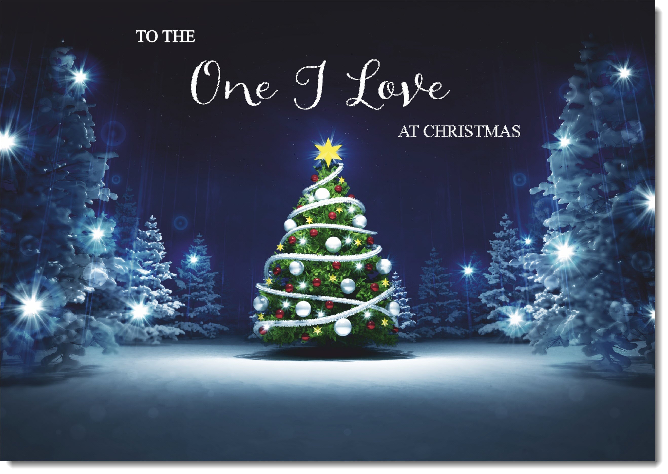 One I Love Christmas Card Christmas Tree Lights in Dark Sky