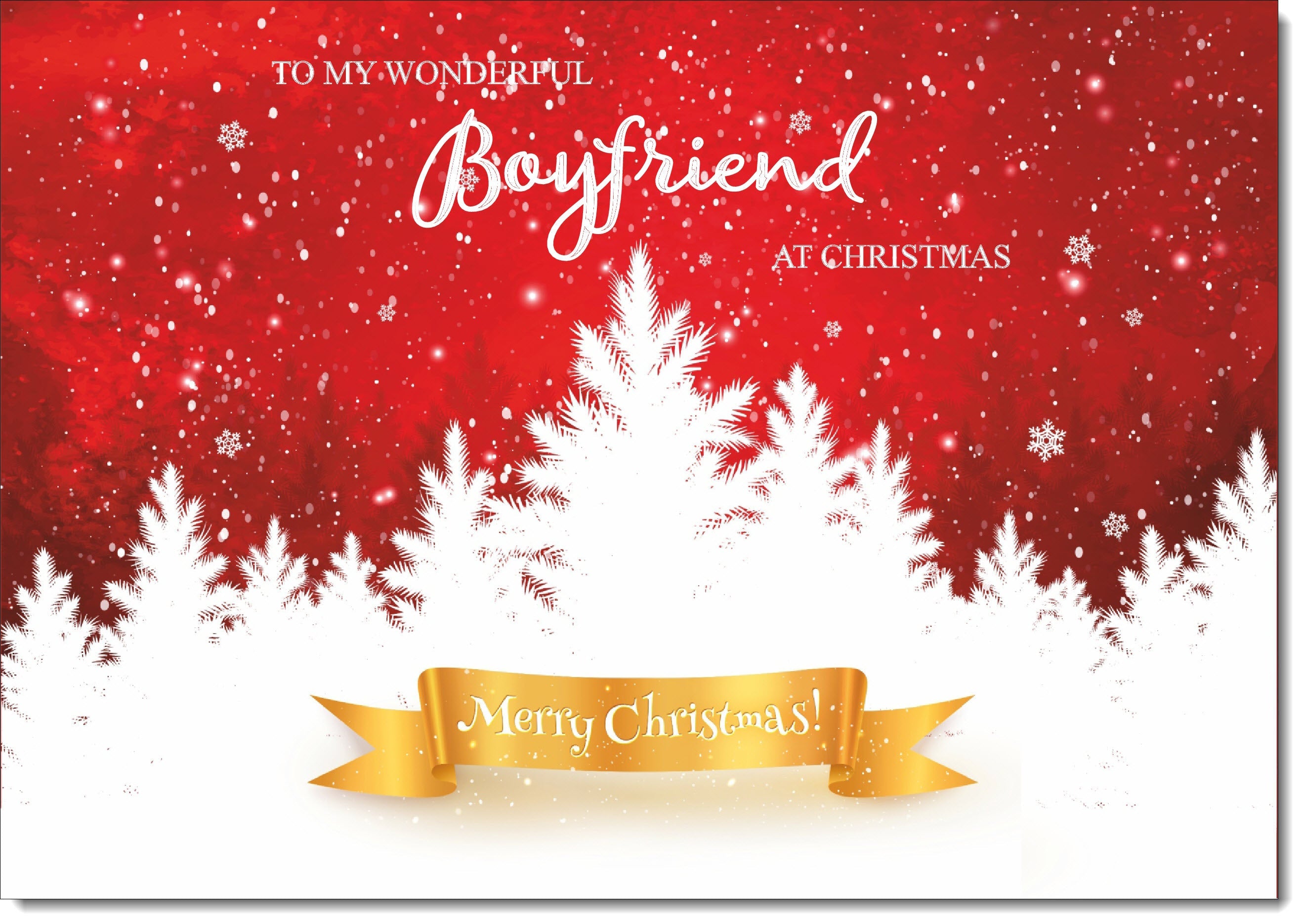 Boyfriend Christmas Card White Forest with Red Sky