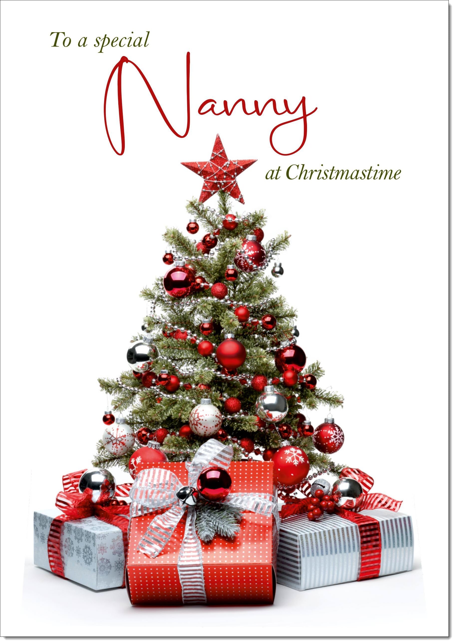 Nanny Christmas Card Christmas Tree and Parcels