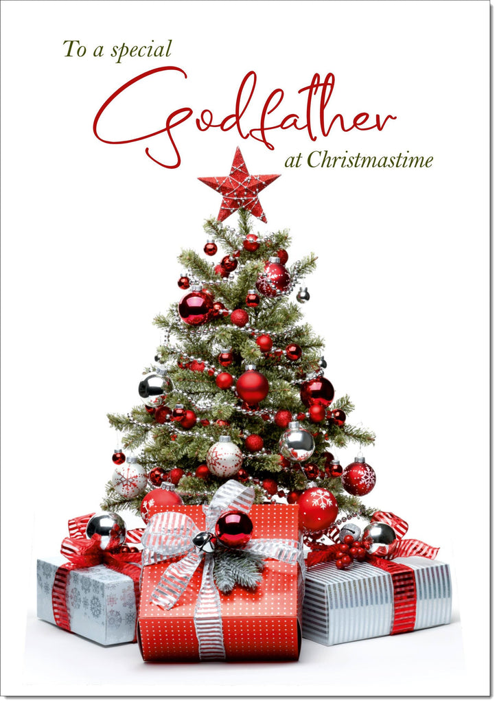 Godfather Christmas Card Christmas Tree and Parcels