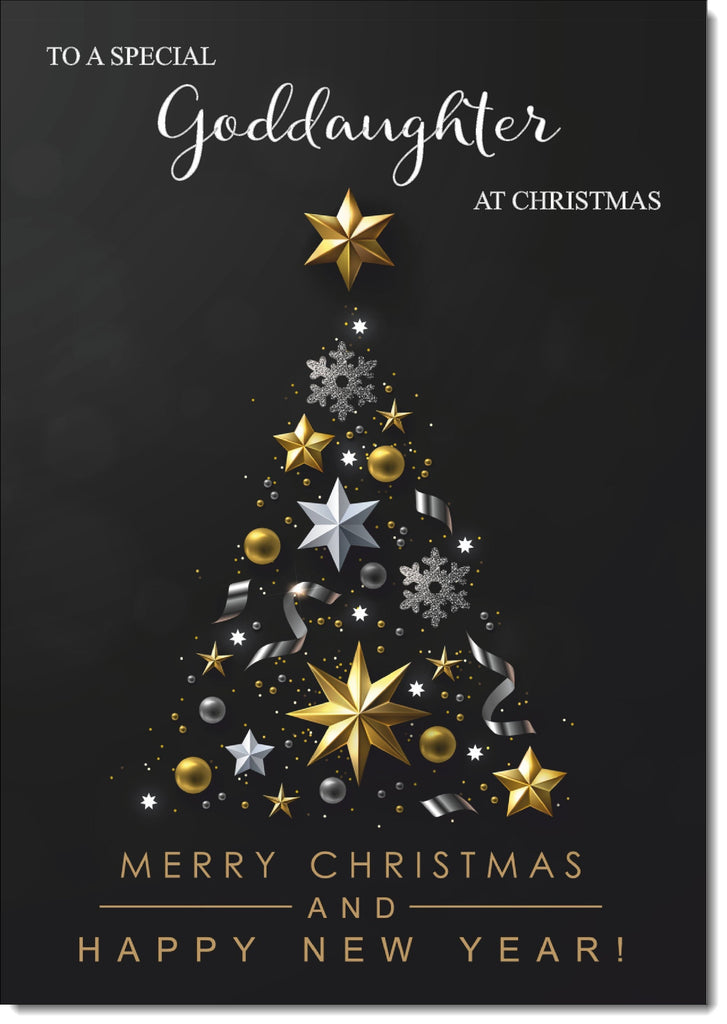 Goddaughter Christmas Card Black Abstract Christmas Tree