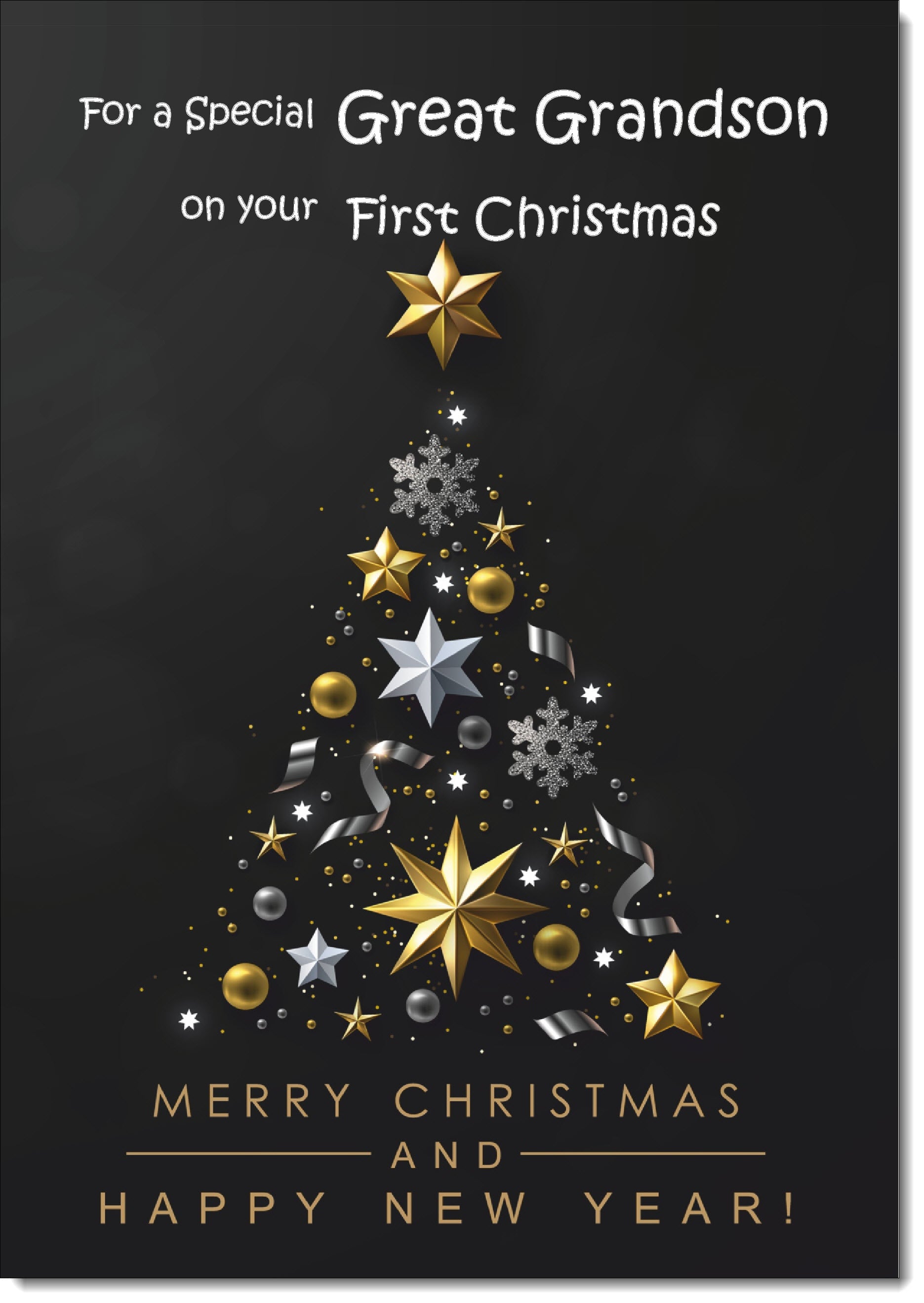 Great Grandsons 1st Christmas Card Black Abstract Christmas Tree