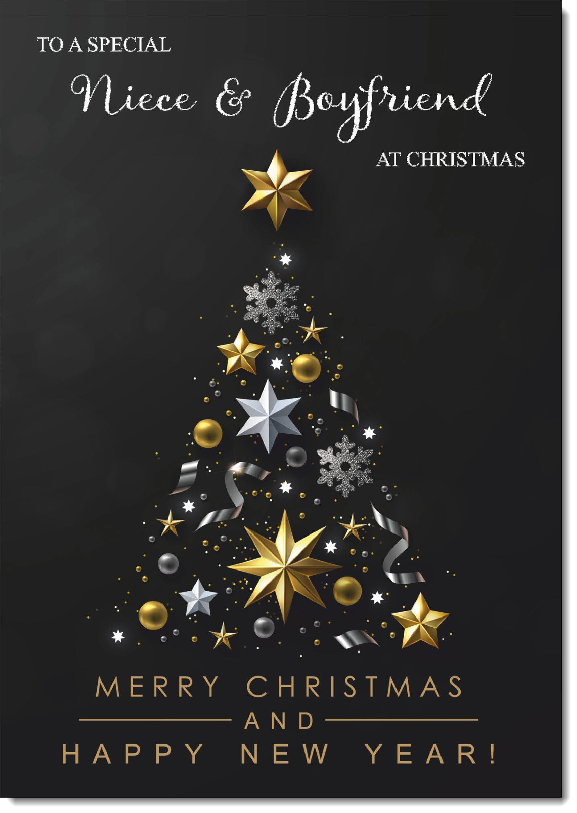 Niece & Boyfriend Christmas Card Black Abstract Christmas Tree