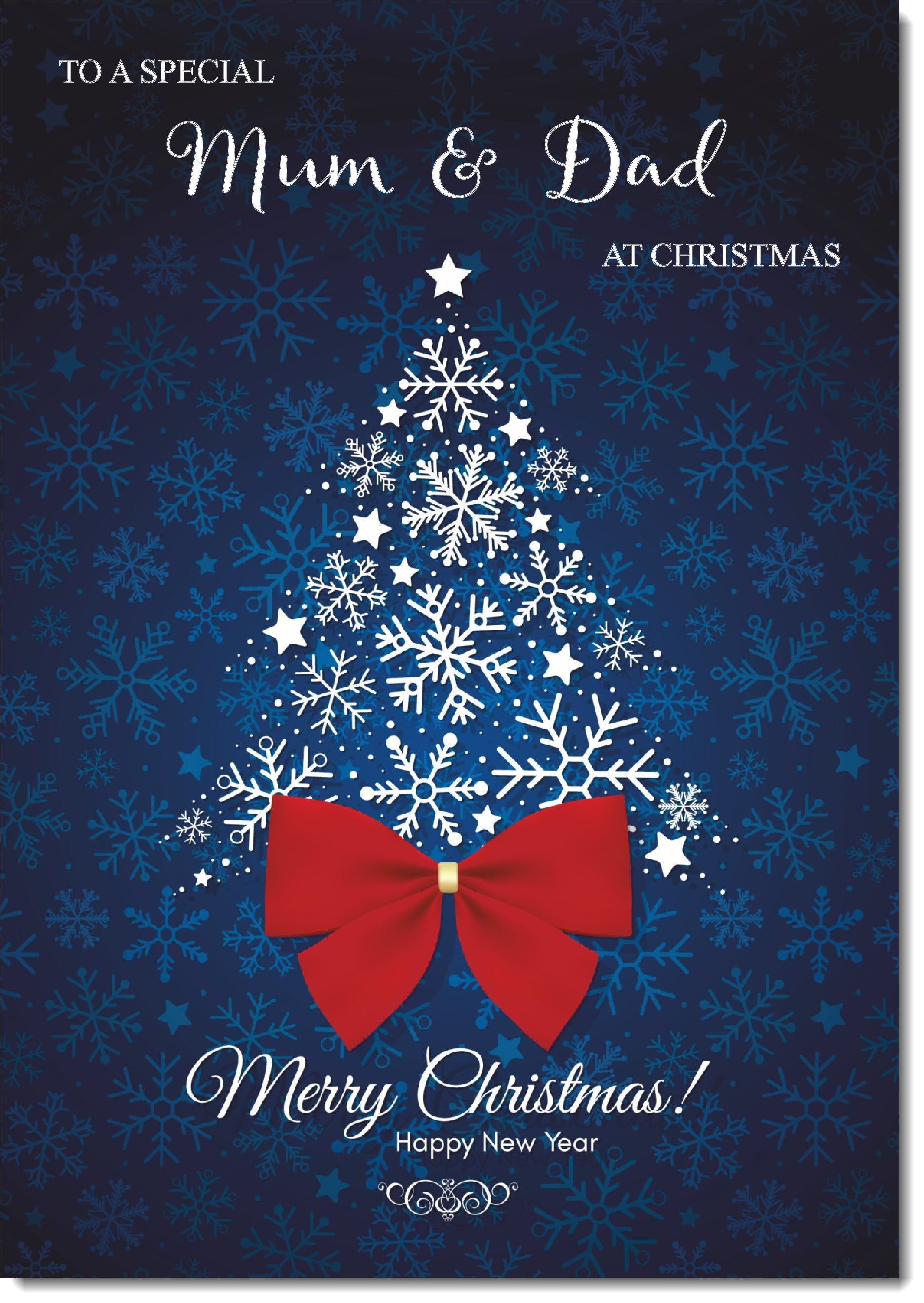 Mum & Dad Christmas Card Blue Abstract Christmas Tree