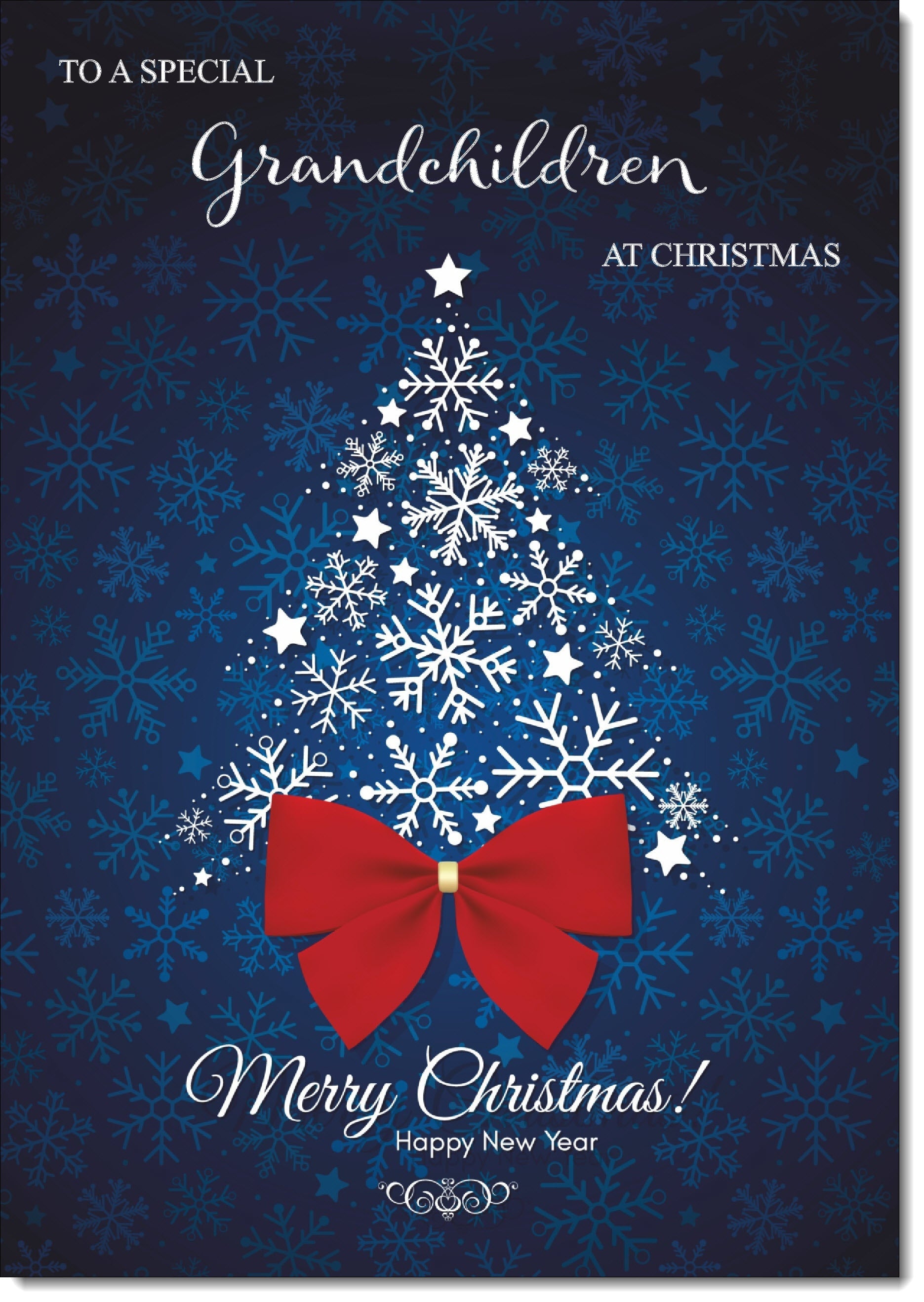 Grandchildren Christmas Card Blue Abstract Christmas Tree