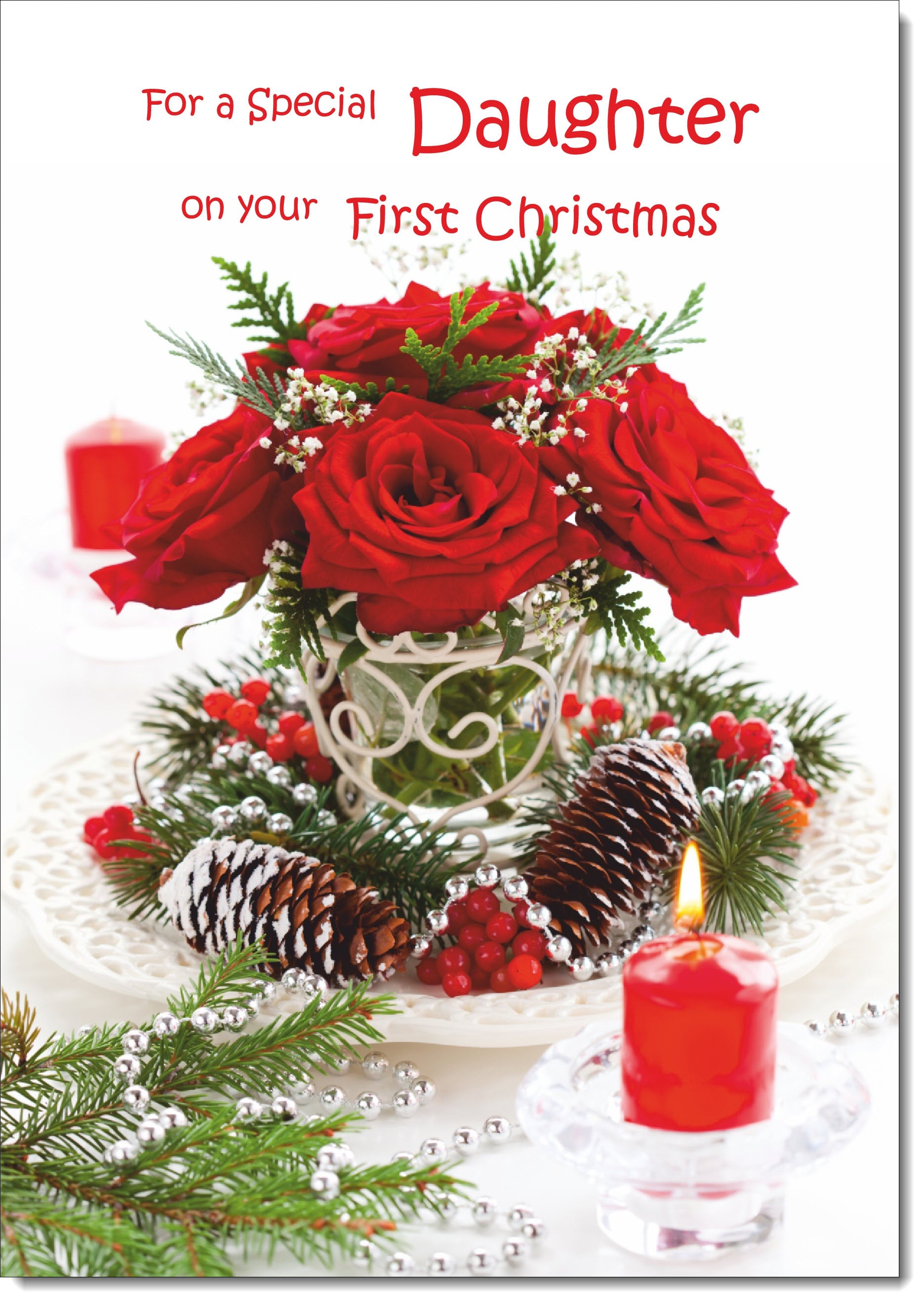 Daughter 1st Christmas Card Red Roses Christmas Arrangement