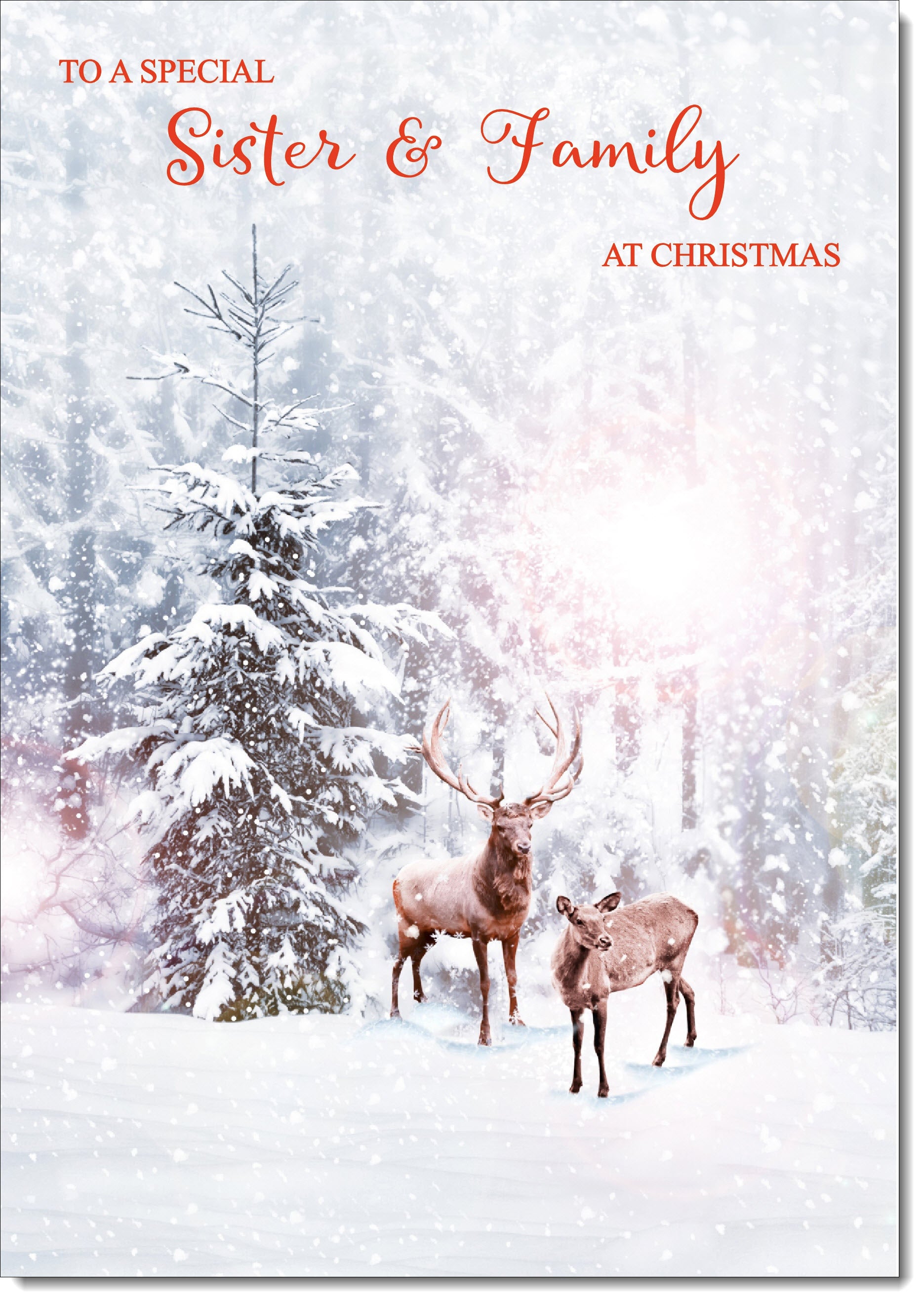 Sister & Family Christmas Card Stag and Doe in Snowy Forest