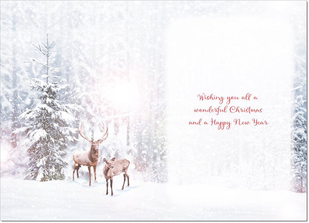 To All Of You Christmas Card Stag and Doe in Snowy Forest