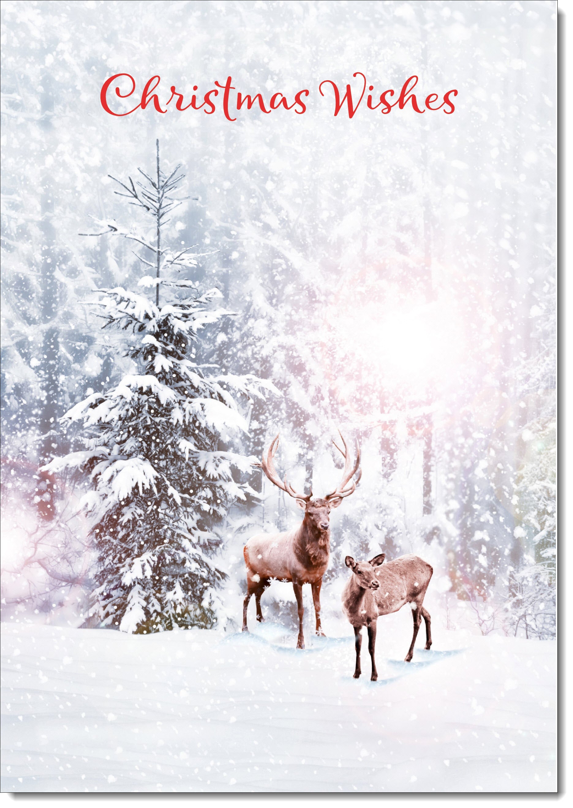 Christmas Wishes Christmas Card Stag and Doe in Snowy Forest