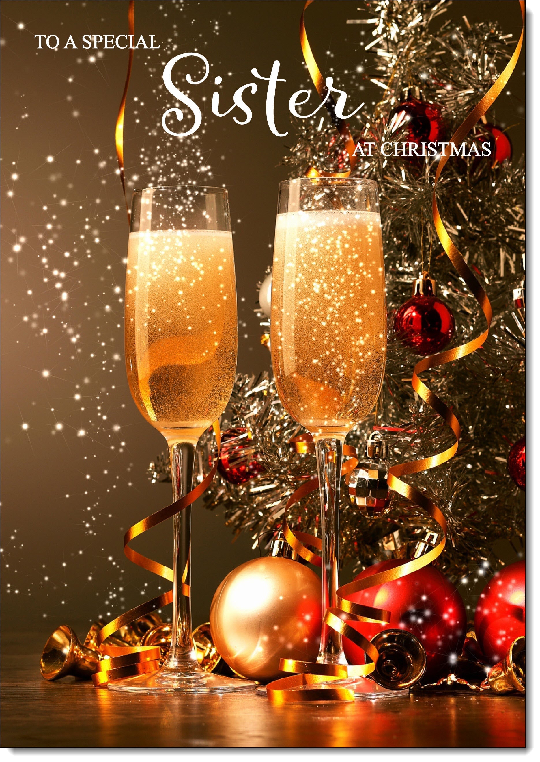 Sister Christmas Card Two Champagne Glasses