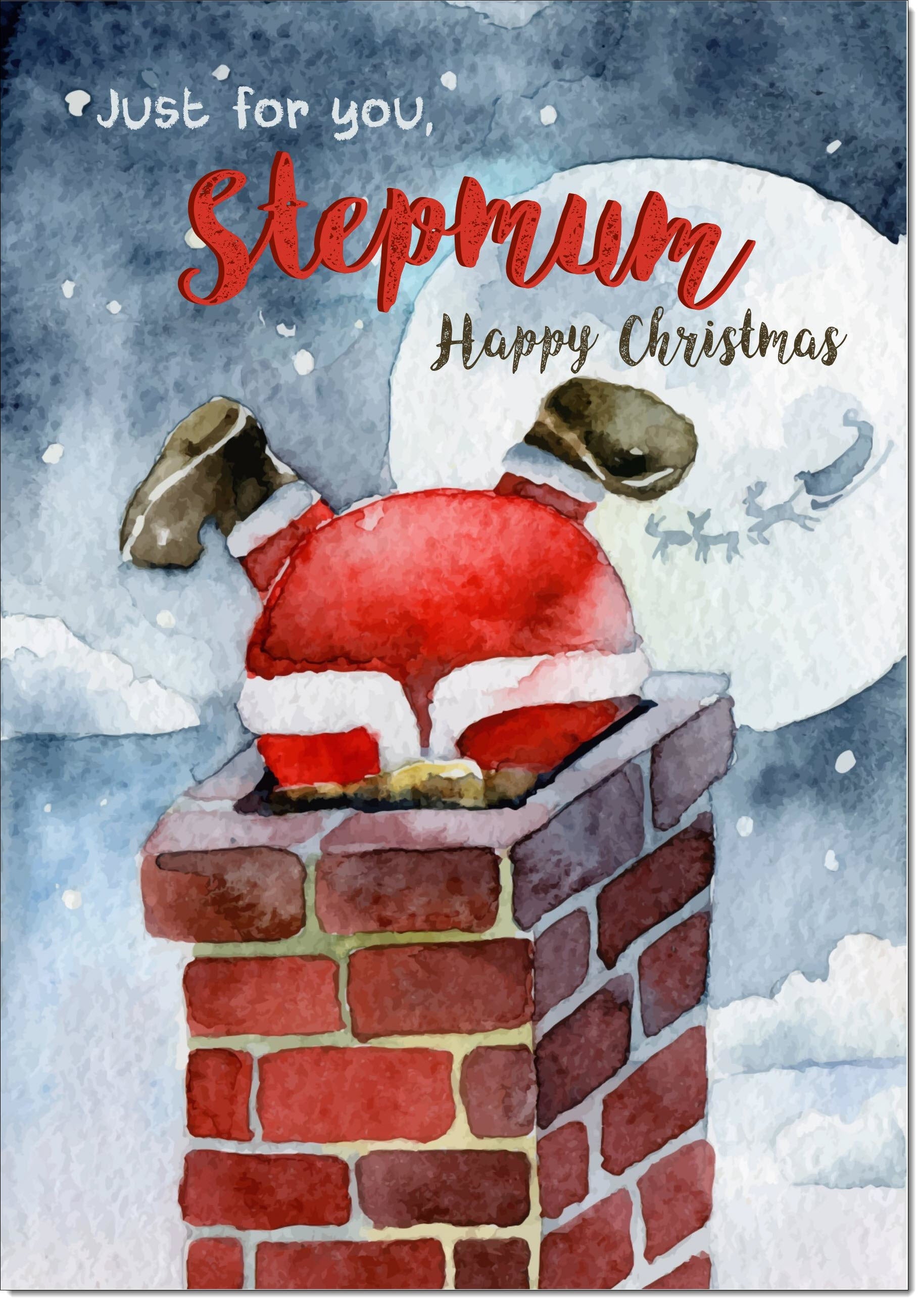 Stepmum Christmas Card Santa Stuck in the Chimney