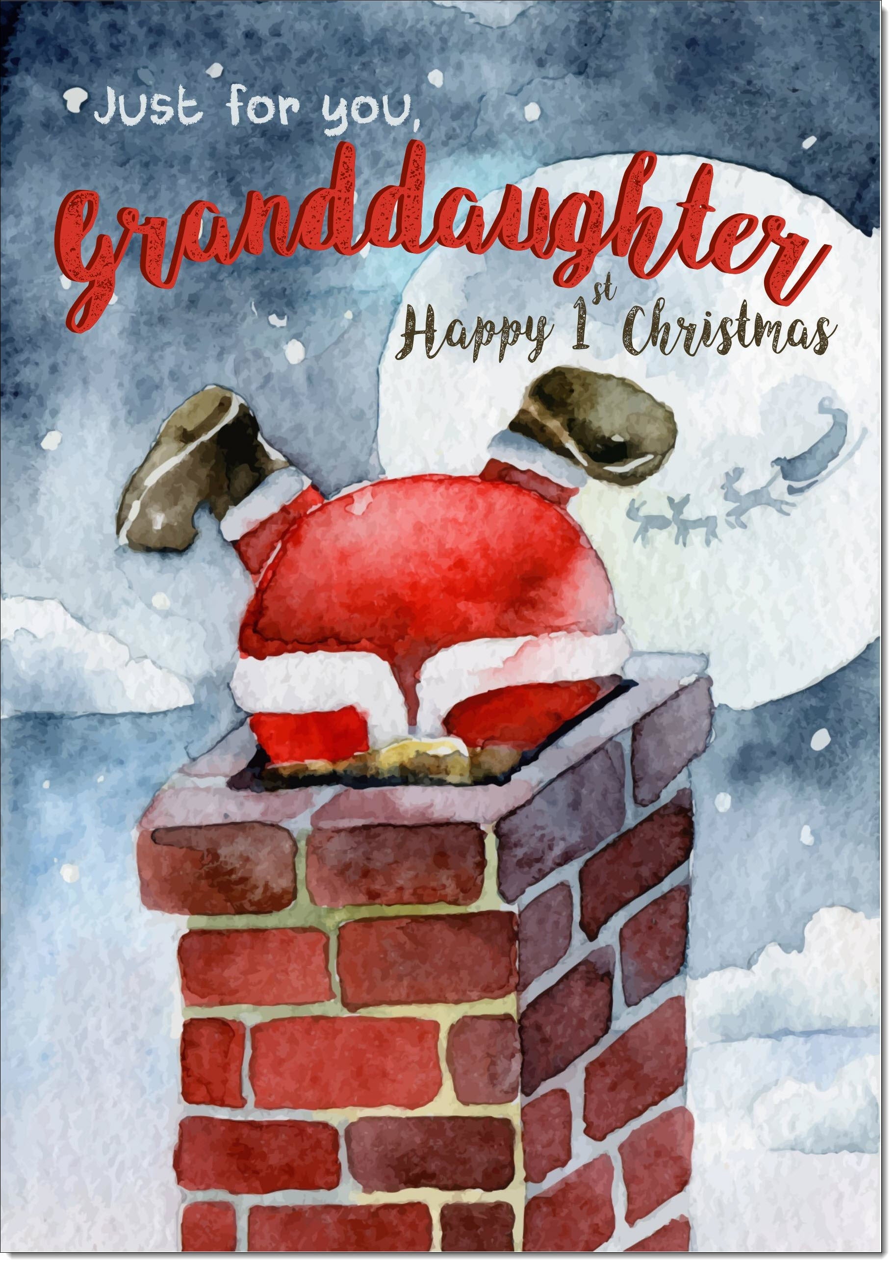 Granddaughters 1st Christmas Card Santa Stuck in the Chimney