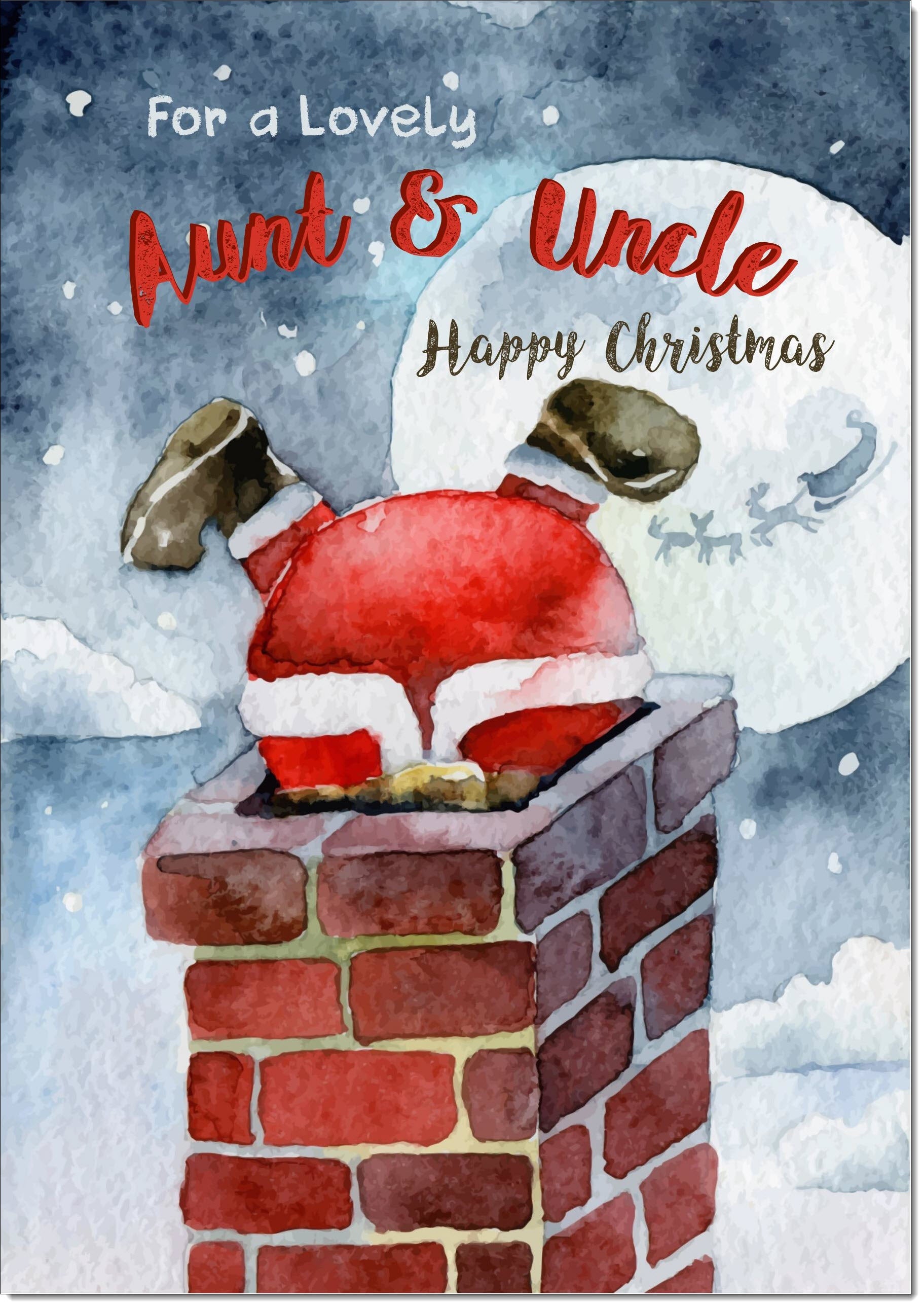 Aunt & Uncle Christmas Card Santa Stuck in the Chimney