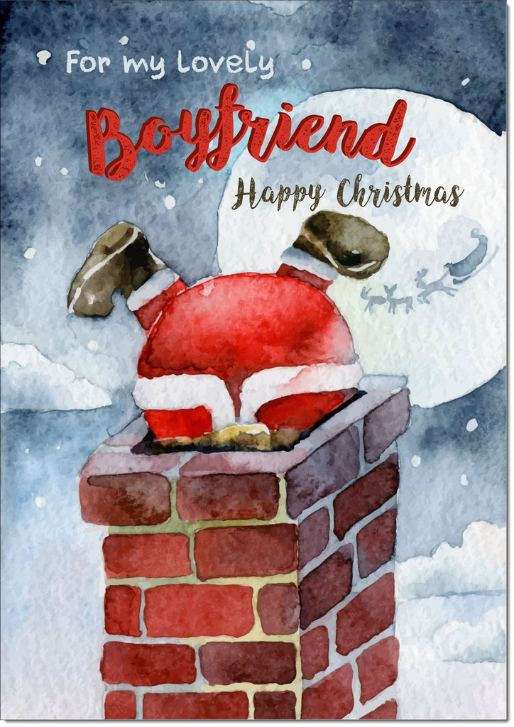 Boyfriend Christmas Card Santa Stuck in the Chimney