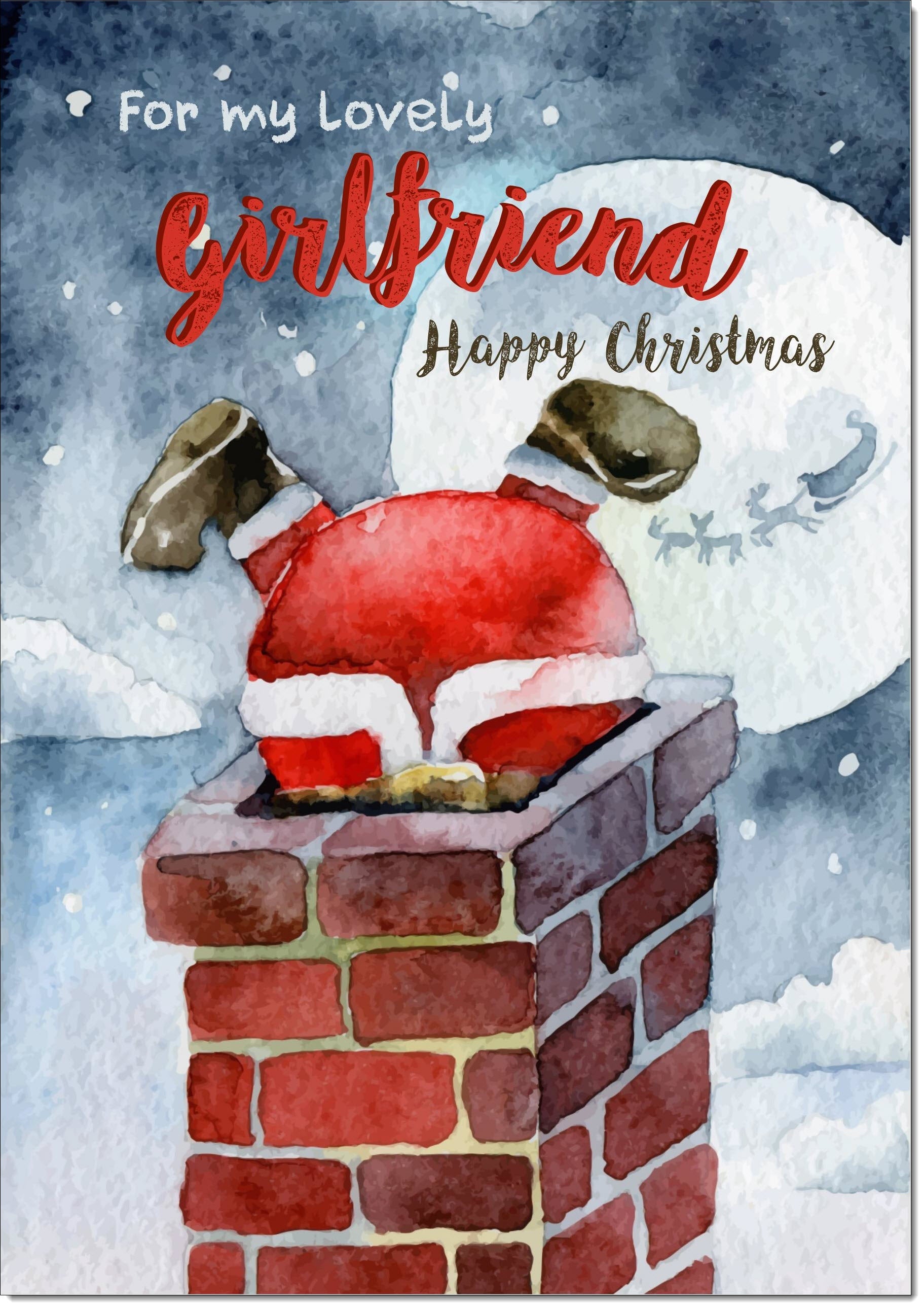 Girlfriend Christmas Card Santa Stuck in the Chimney