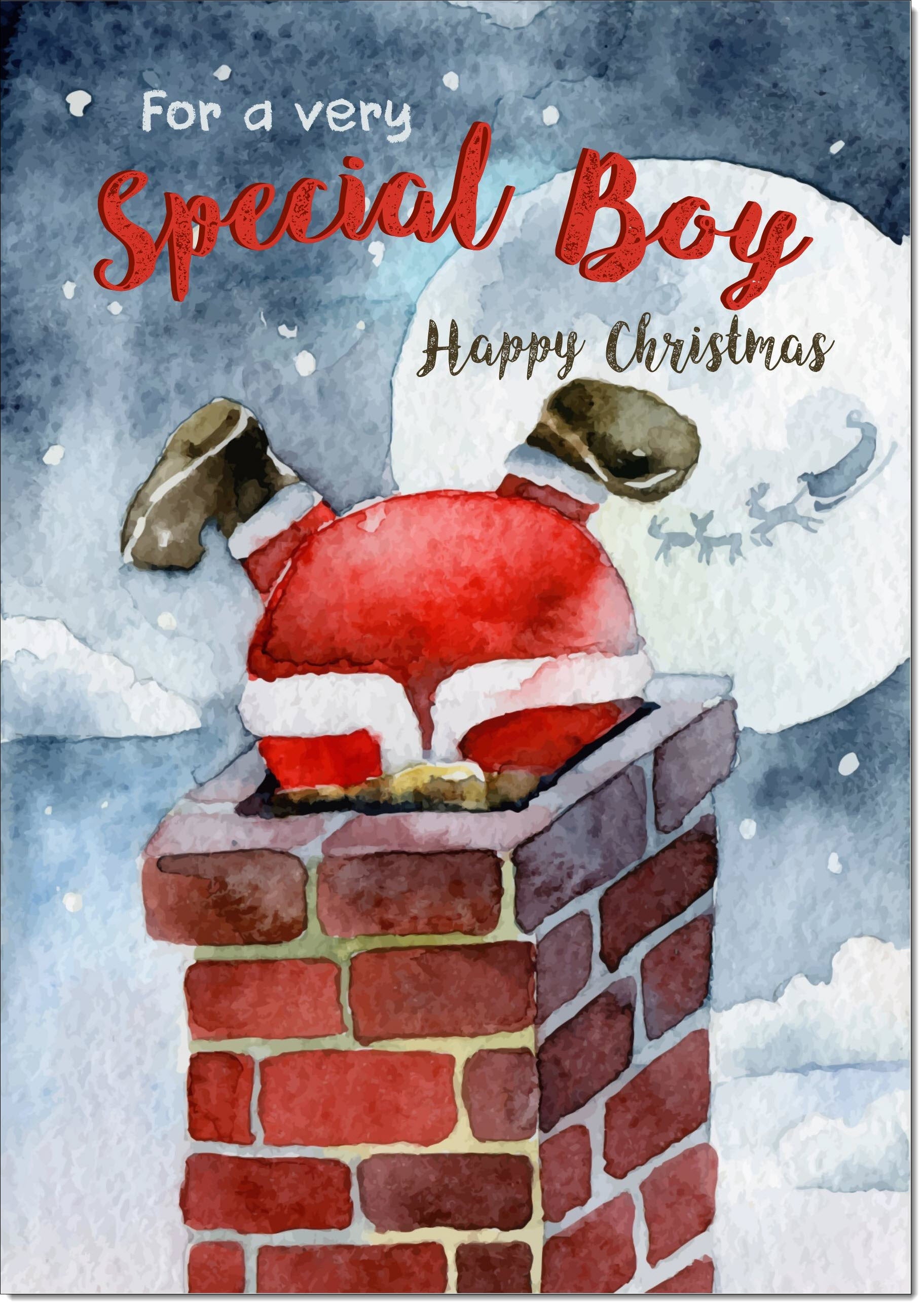 Special Boy Christmas Card Santa Stuck in the Chimney