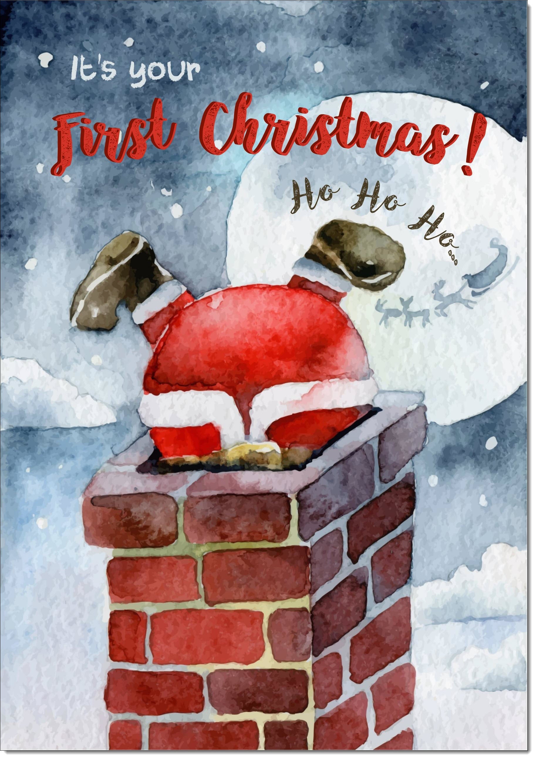 Babys 1st Christmas Card Santa Stuck in the Chimney