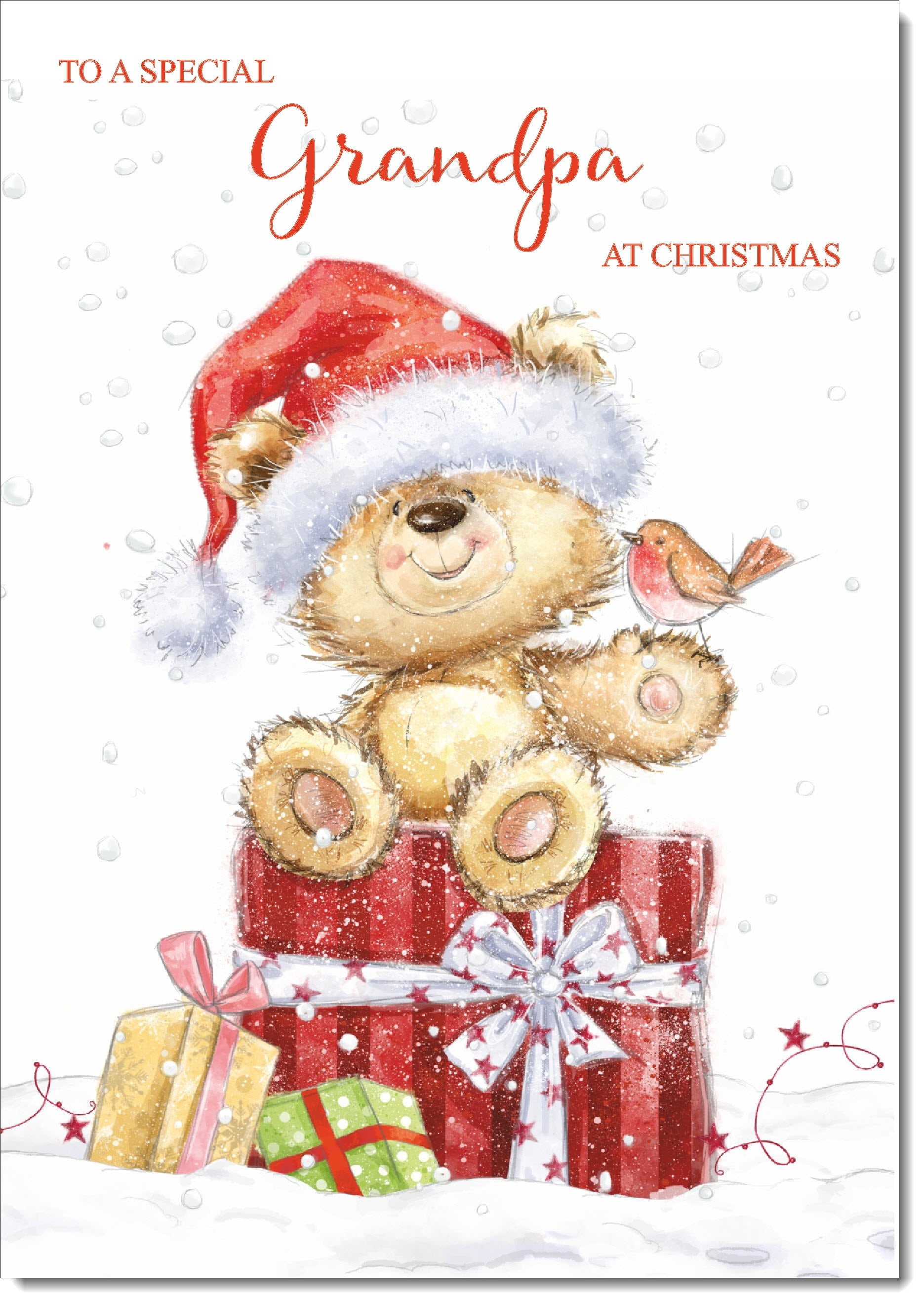 Grandpa Christmas Card Cute Bear on Parcel