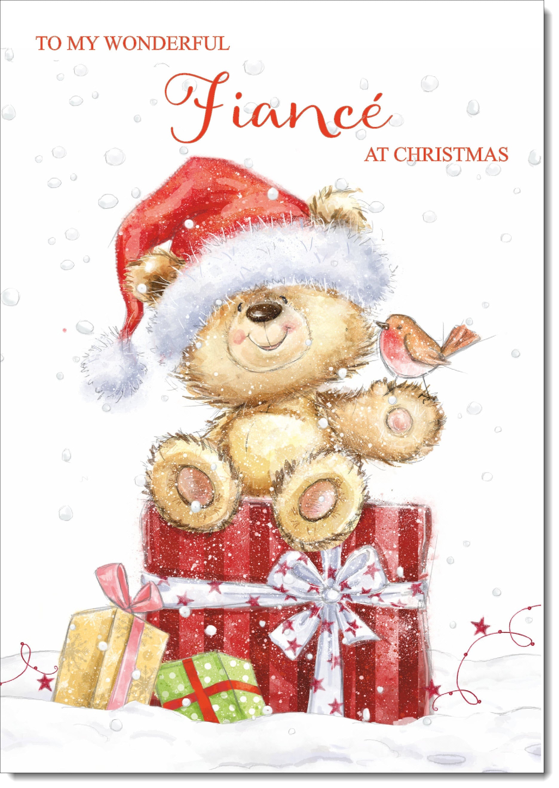 Fiance Christmas Card Cute Bear on Parcel