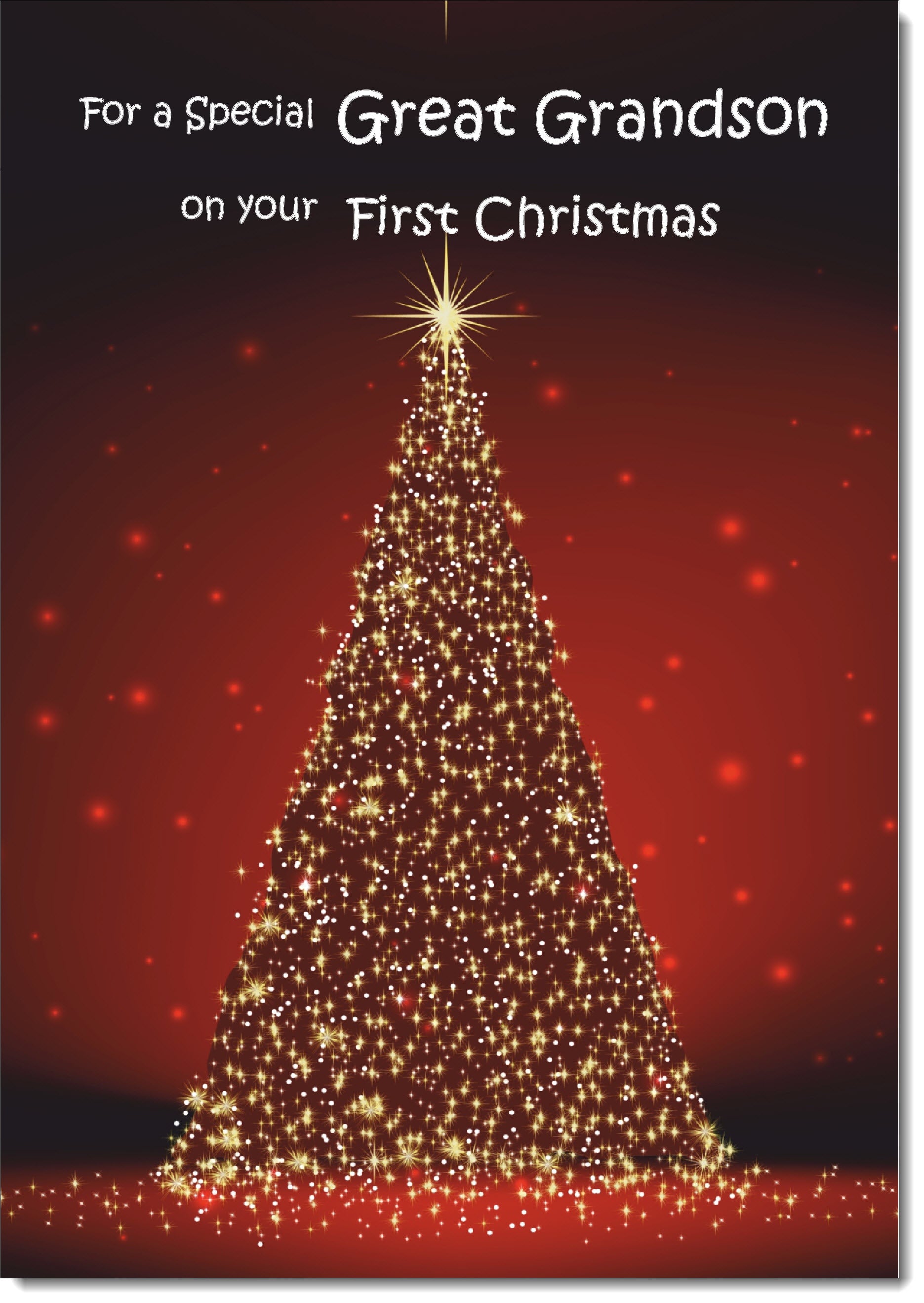 Great Grandsons 1st Christmas Card Red Christmas Tree