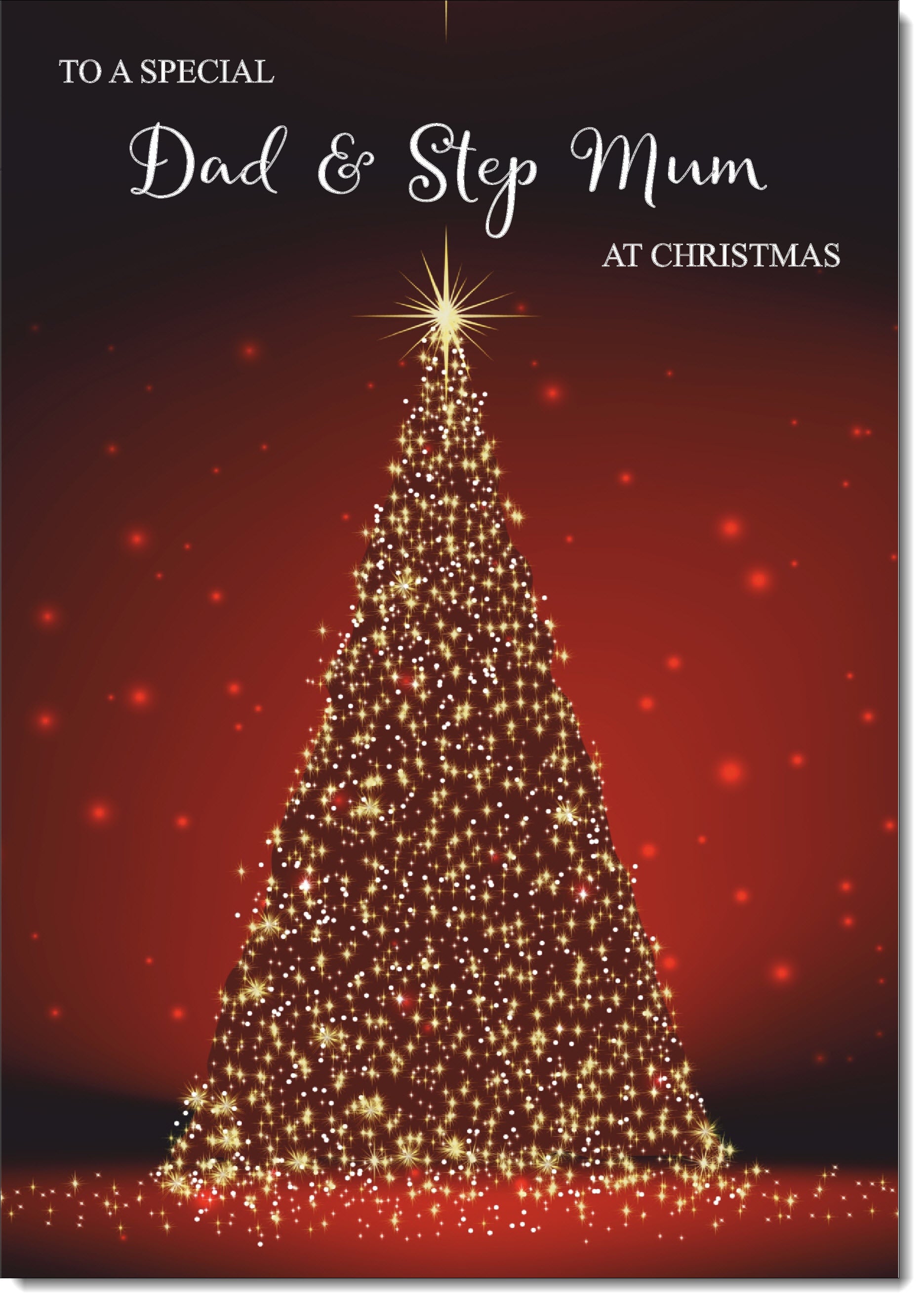 Dad & Stepmum Christmas Card Red Christmas Tree