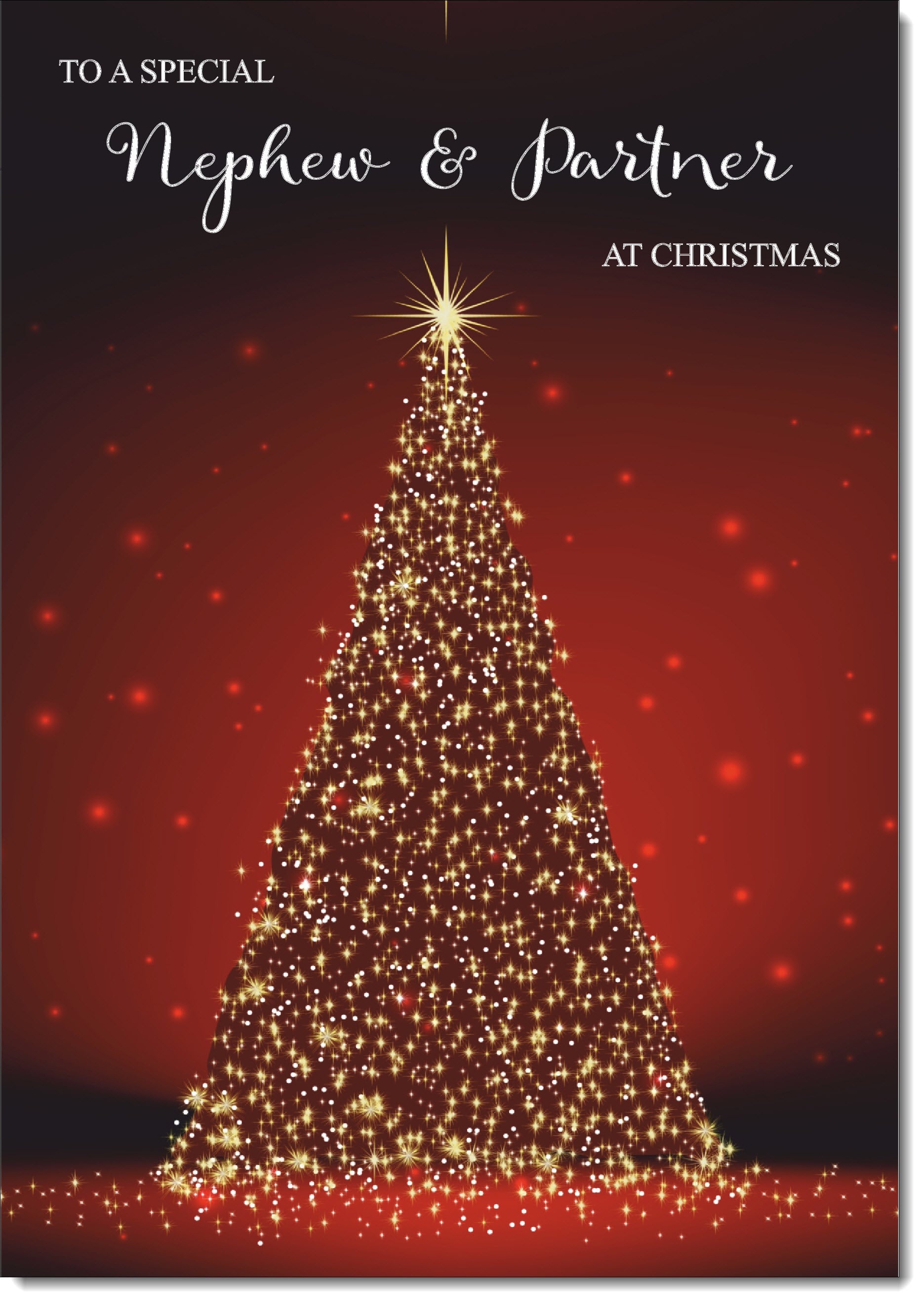Nephew & Partner Christmas Card Red Christmas Tree