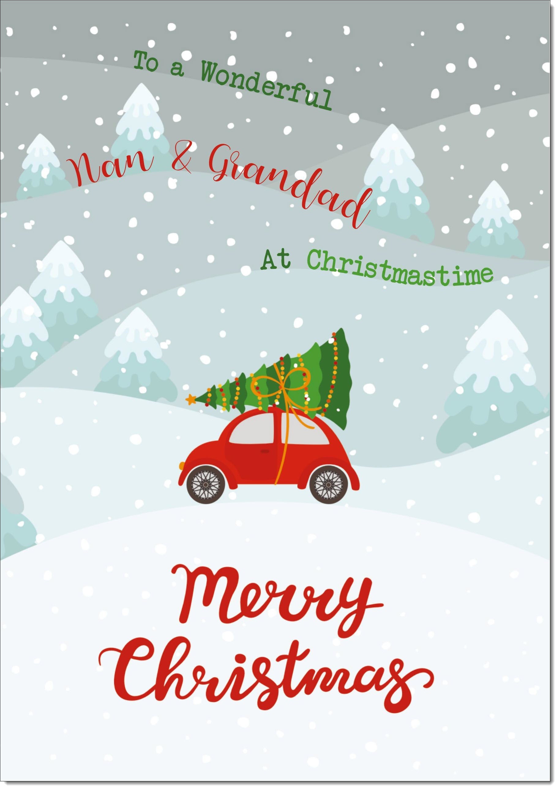 Nan & Grandad Christmas Card Christmas Tree on Car