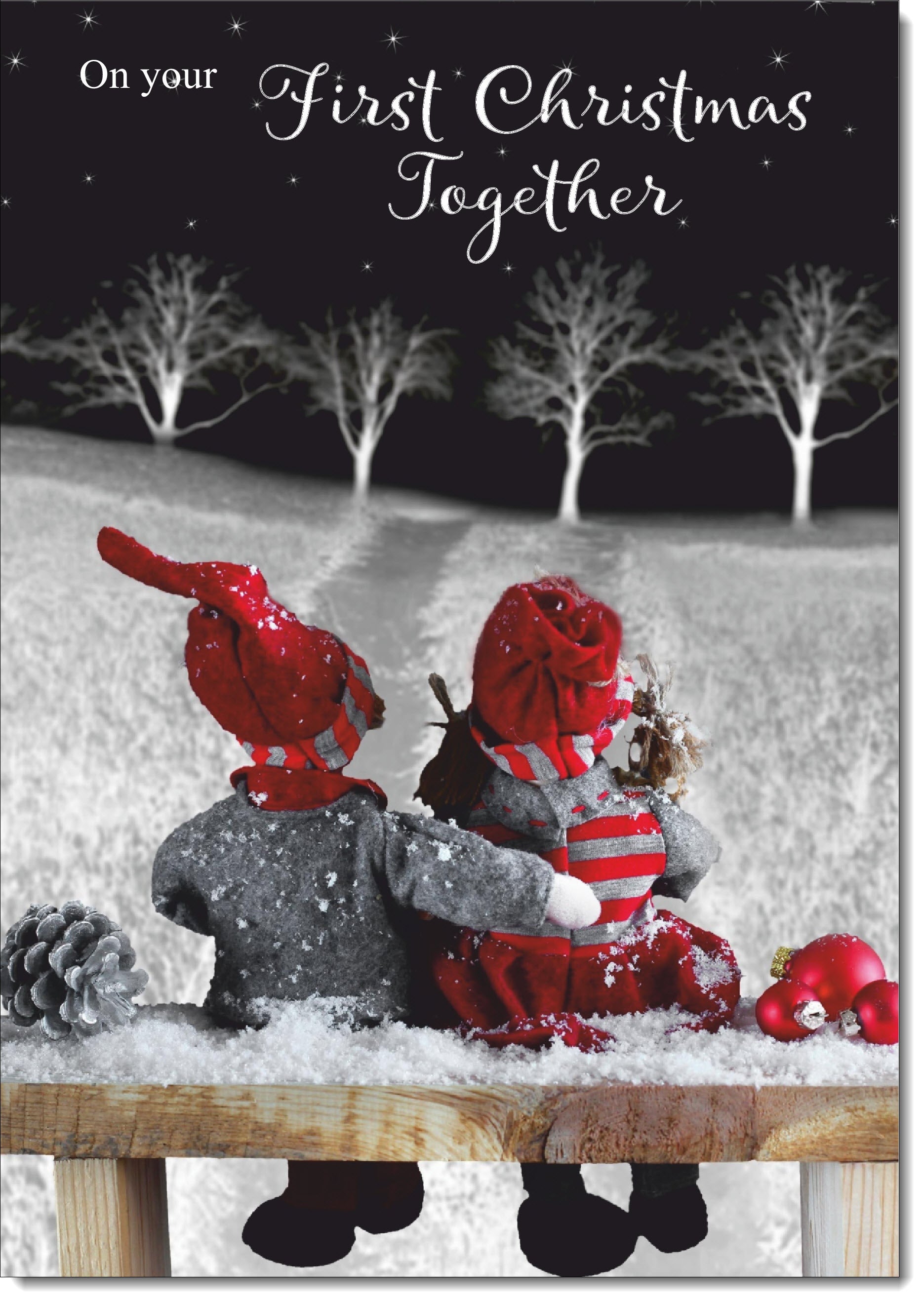 1st Together Christmas Card Cute Couple on a Snowy Night