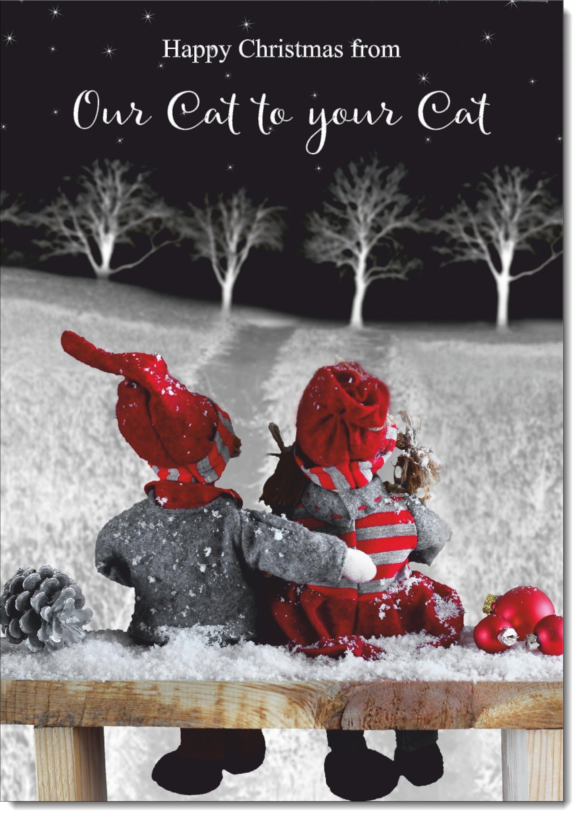 Our Cat To Your Cat Christmas Card Cute Couple on a Snowy Night