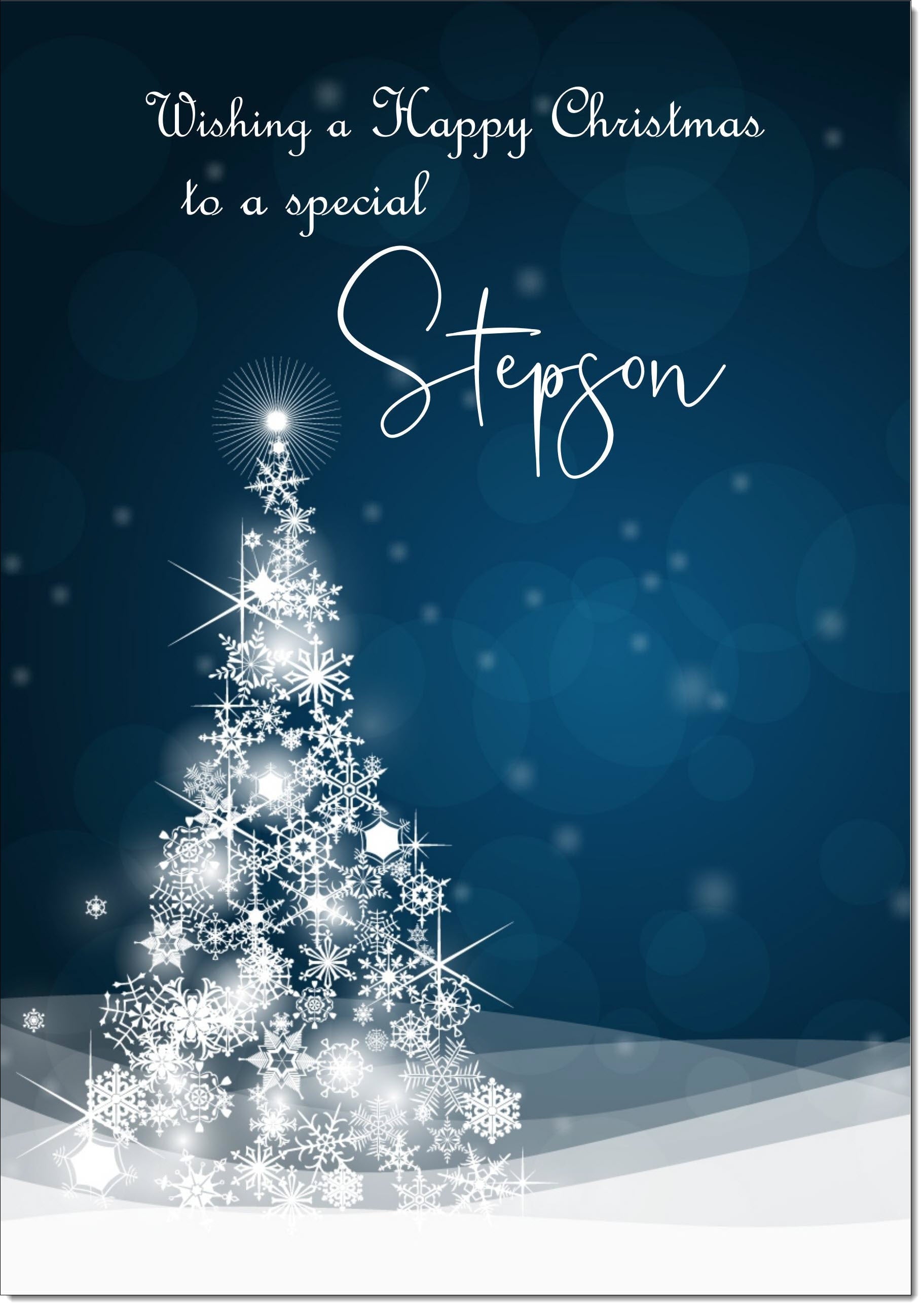 Stepson Christmas Card Blue Abstract Christmas Tree