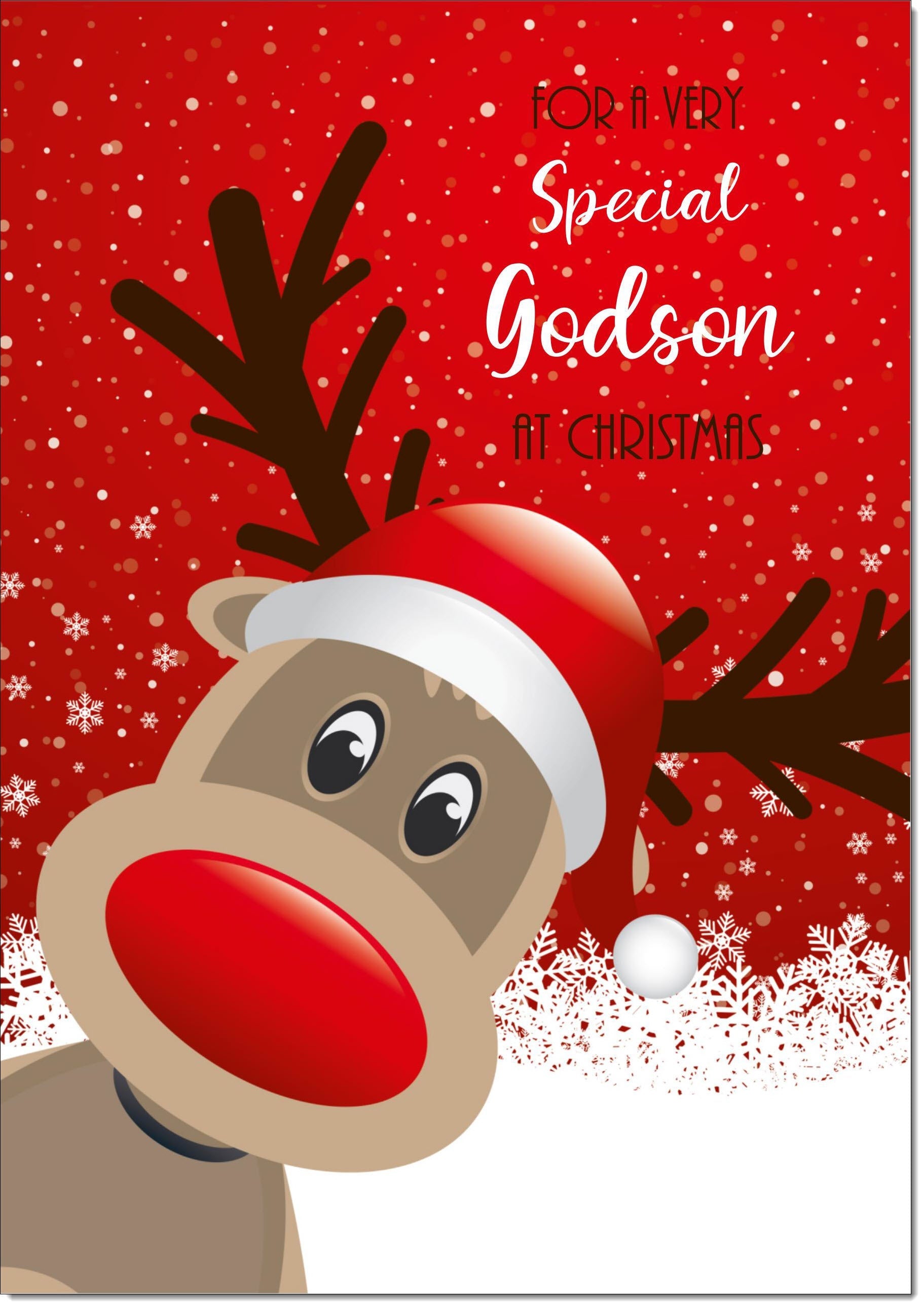 Godson Christmas Card Rudolph in Snow