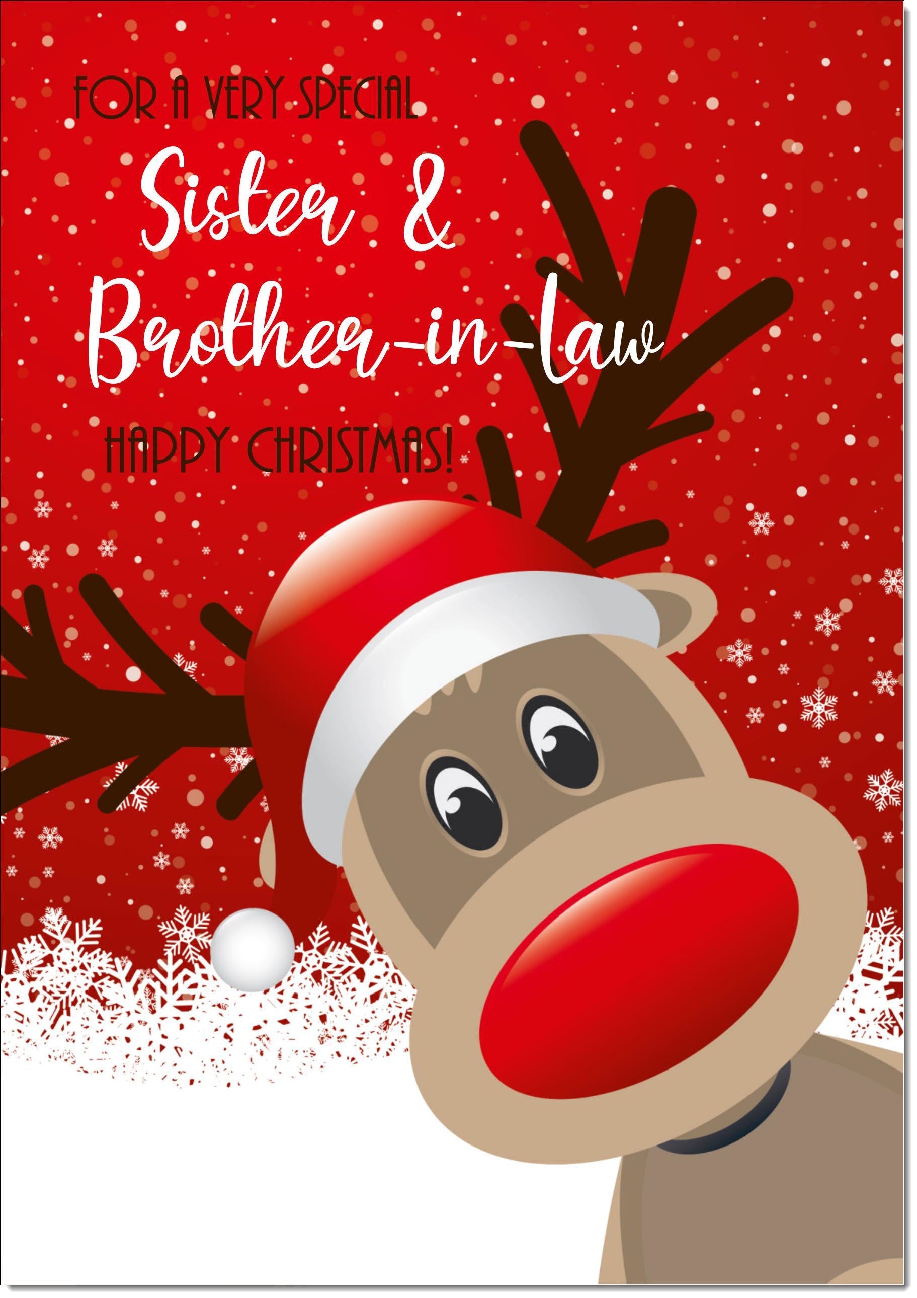 Sister & Brother-in-Law Christmas Card Rudolph in Snow