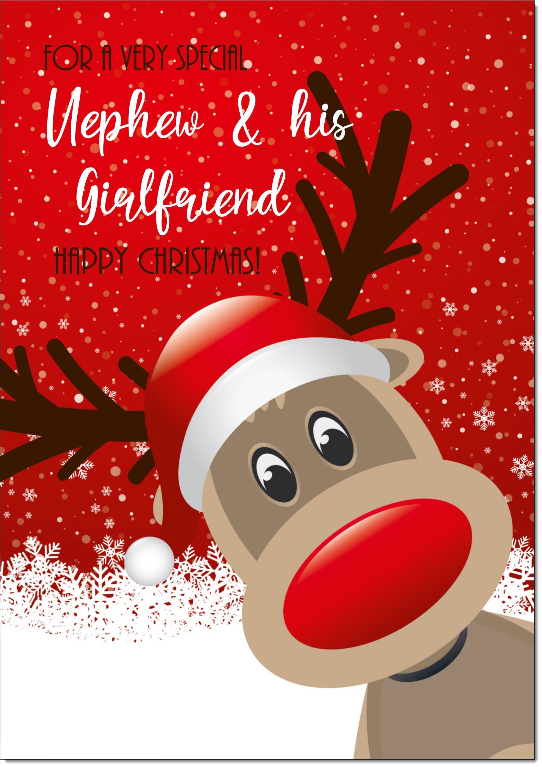 Nephew & Girlfriend Christmas Card Rudolph in Snow