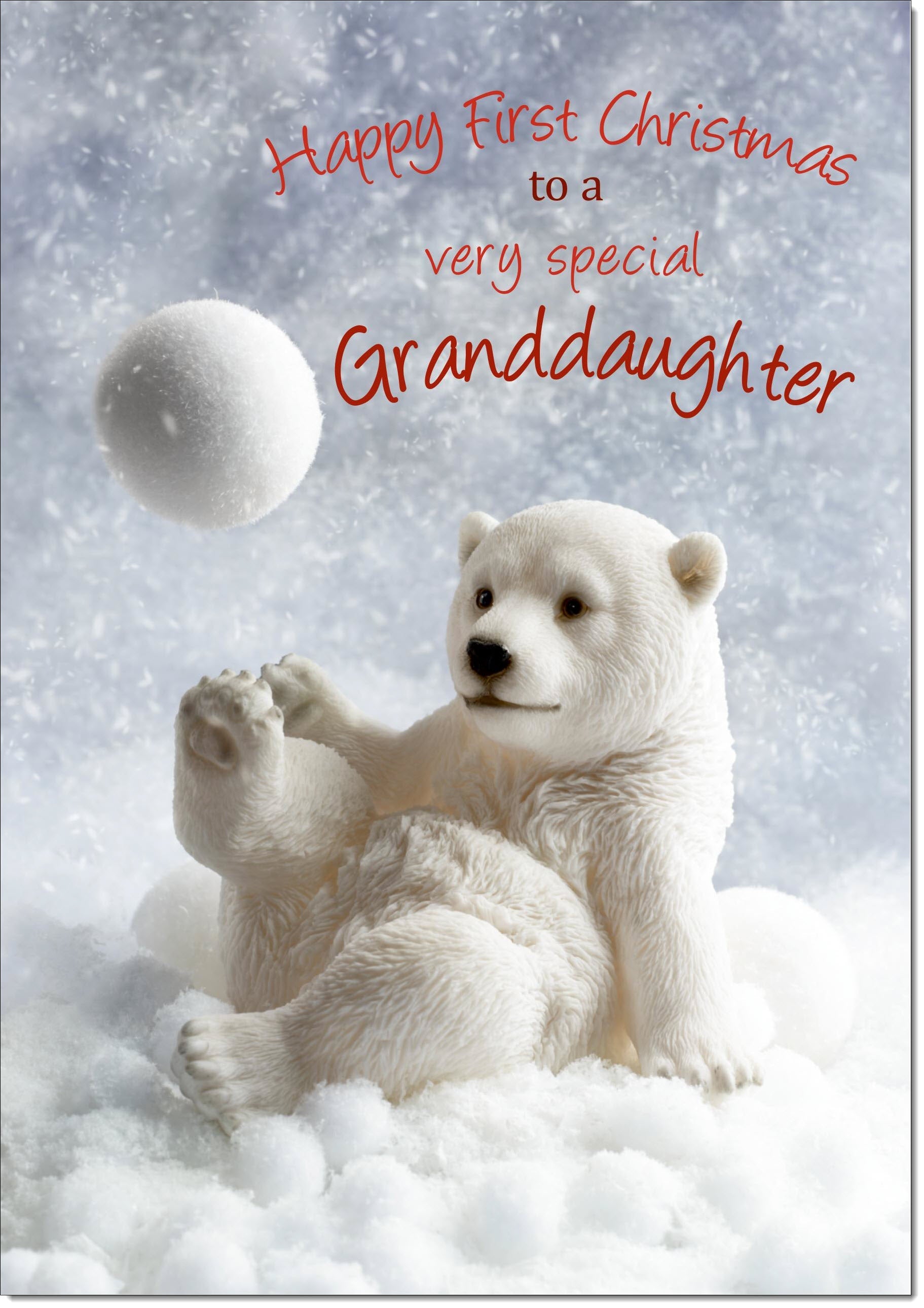 Granddaughters 1st Christmas Card Polar Bear and Snowball