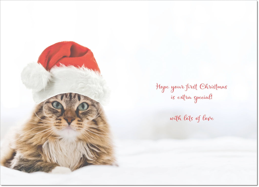 Daughter 1st Christmas Card Cat with Santa Hat
