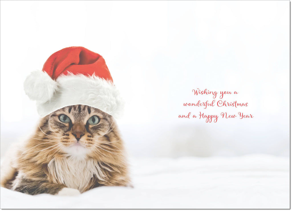 Father Christmas Card Cat with Santa Hat