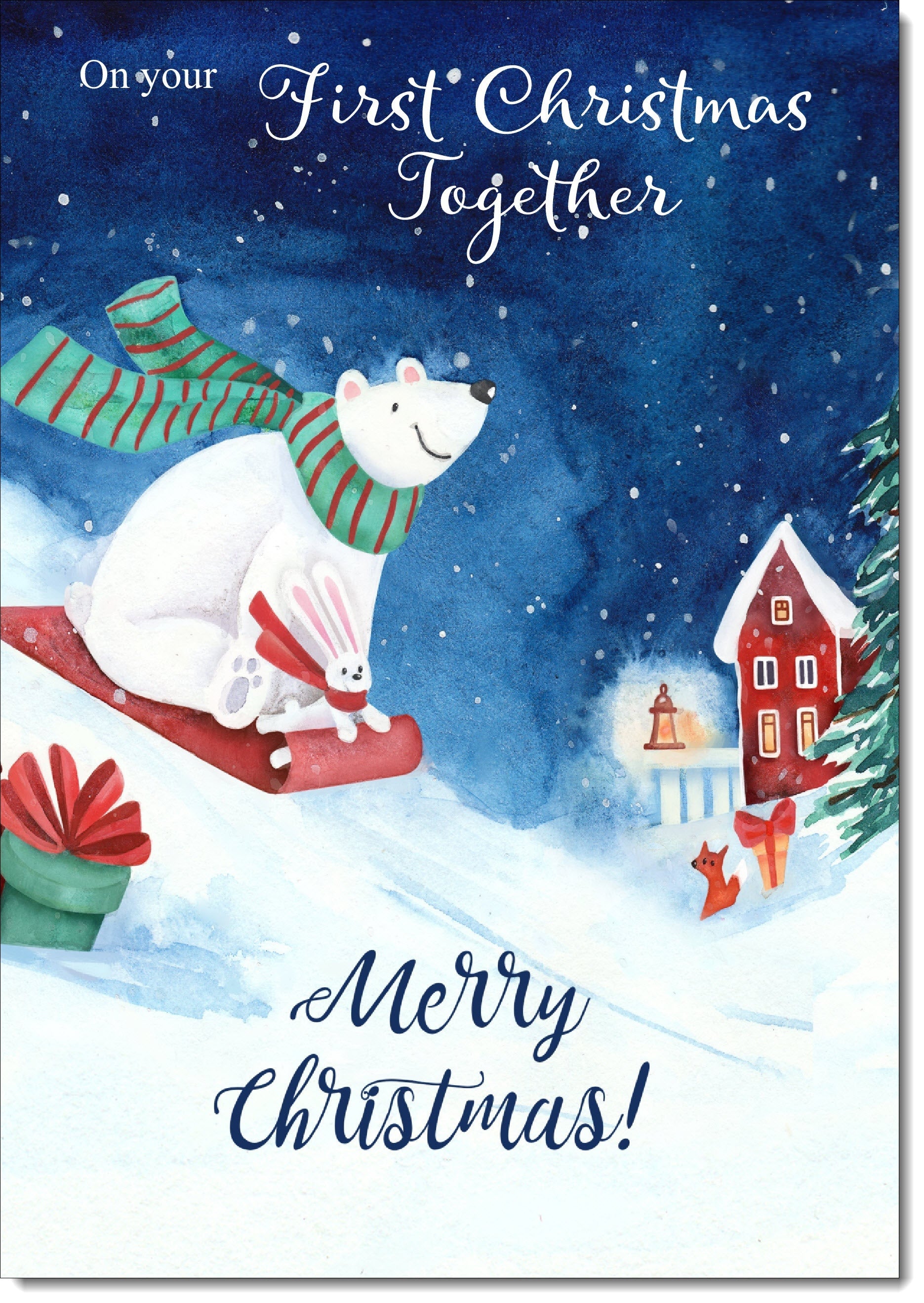 1st Together Christmas Card Polar Bear on Sled