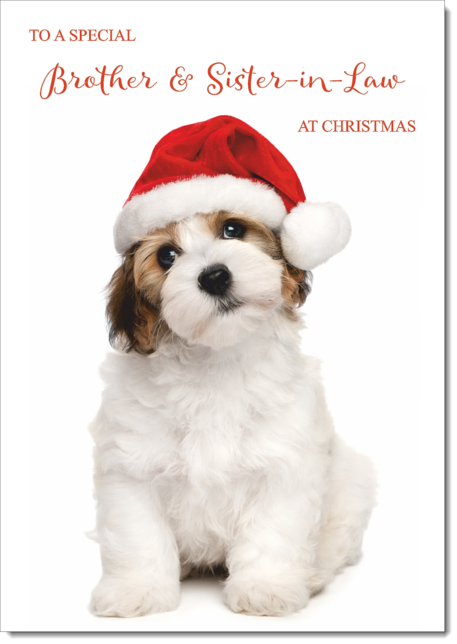 Brother & Sister-in-Law Christmas Card Dog and Santa Hat