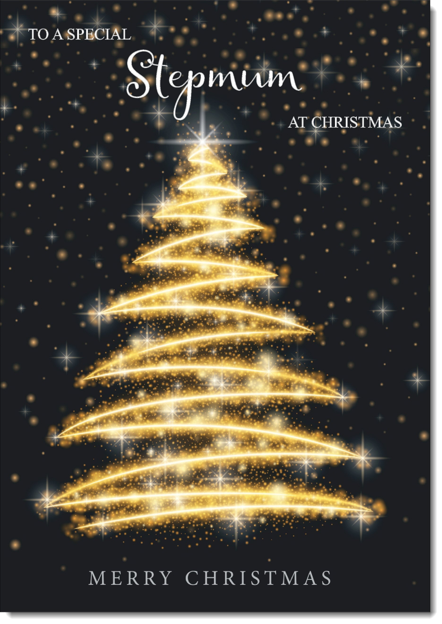 Stepmum Christmas Card Black and Gold Abstract Tree