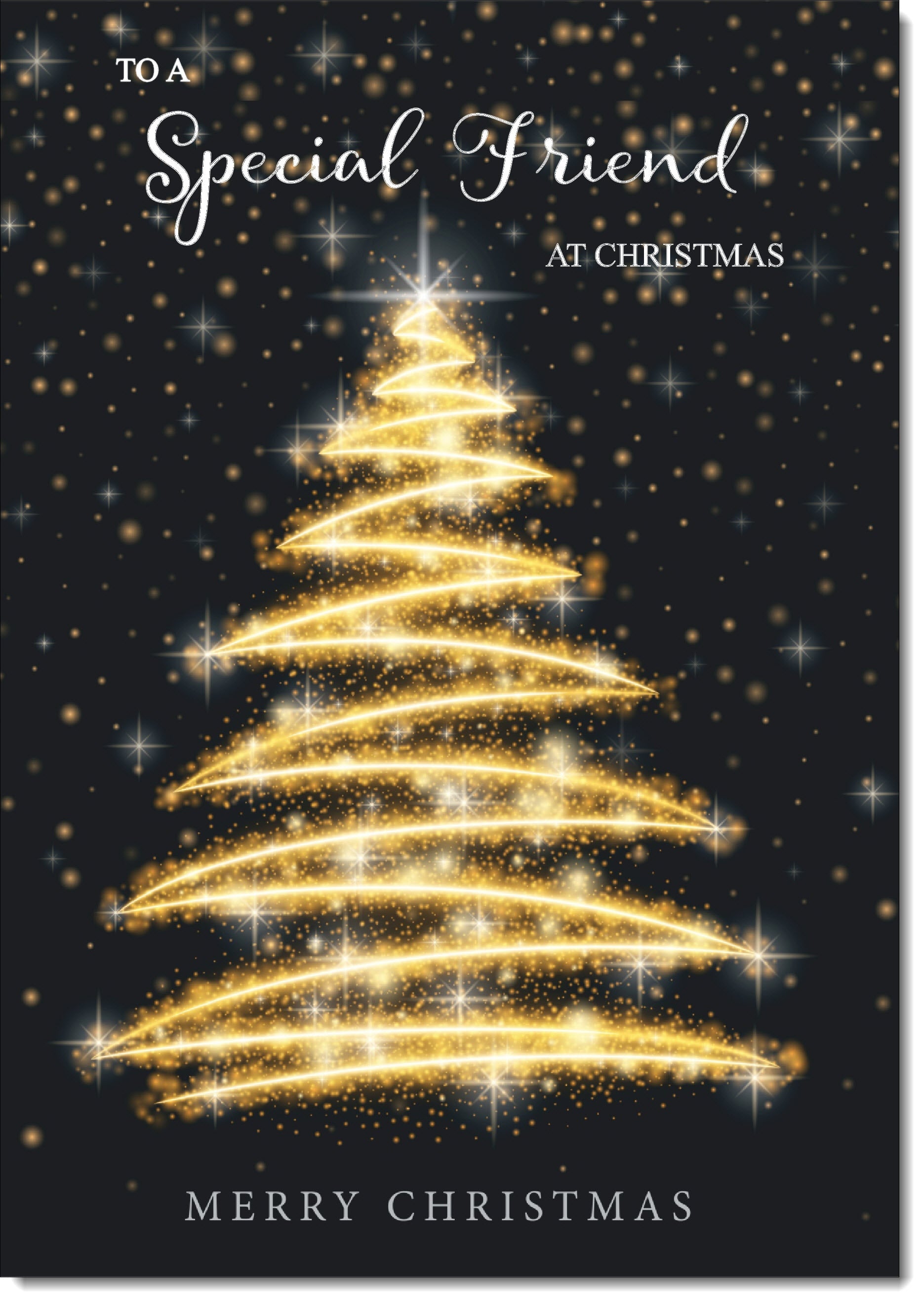Special Friend Christmas Card Black and Gold Abstract Tree