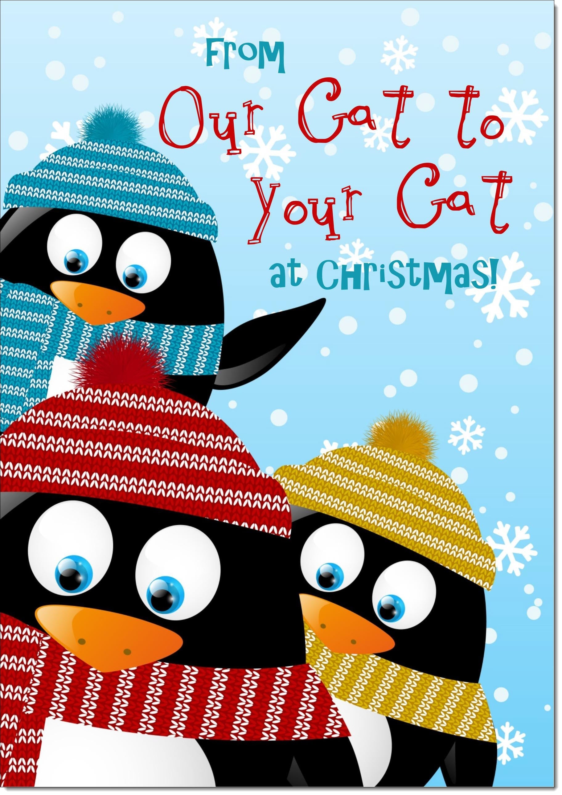 Our Cat To Your Cat Christmas Card Three Penquins