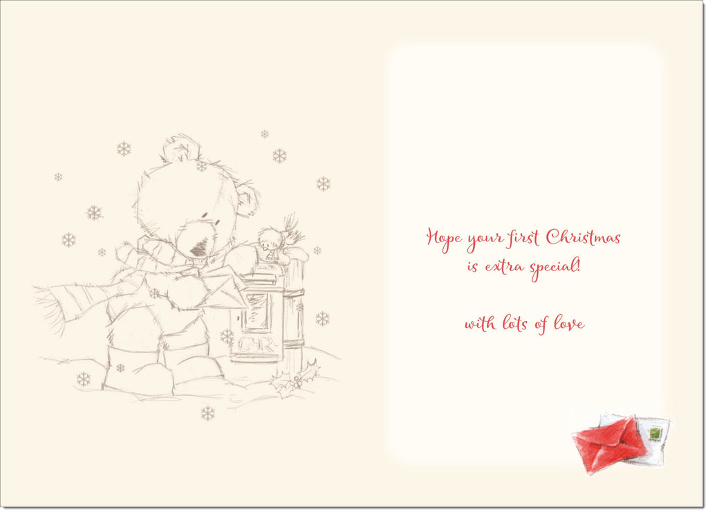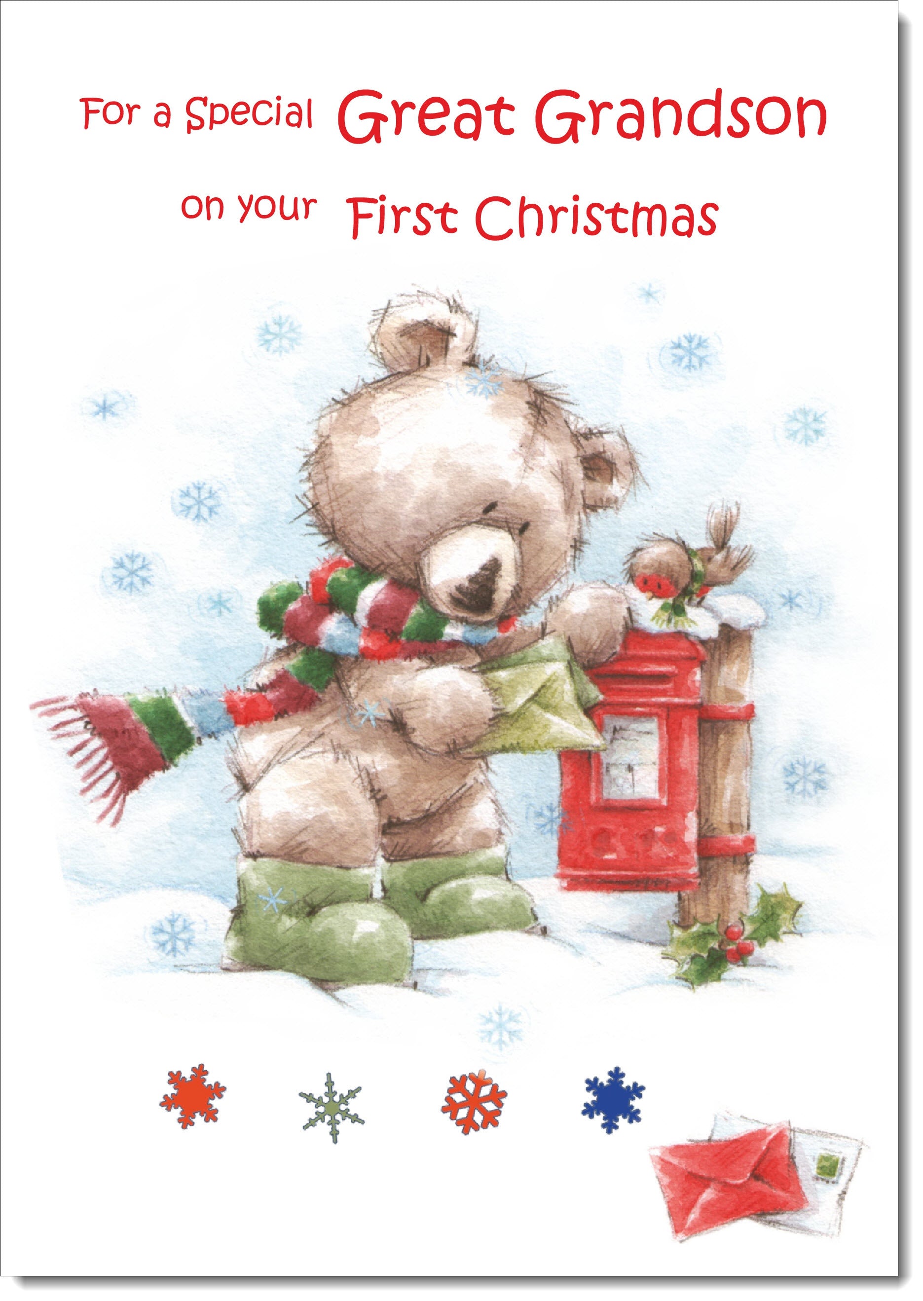 Great Grandsons 1st Christmas Card Cute Bear at Post Box