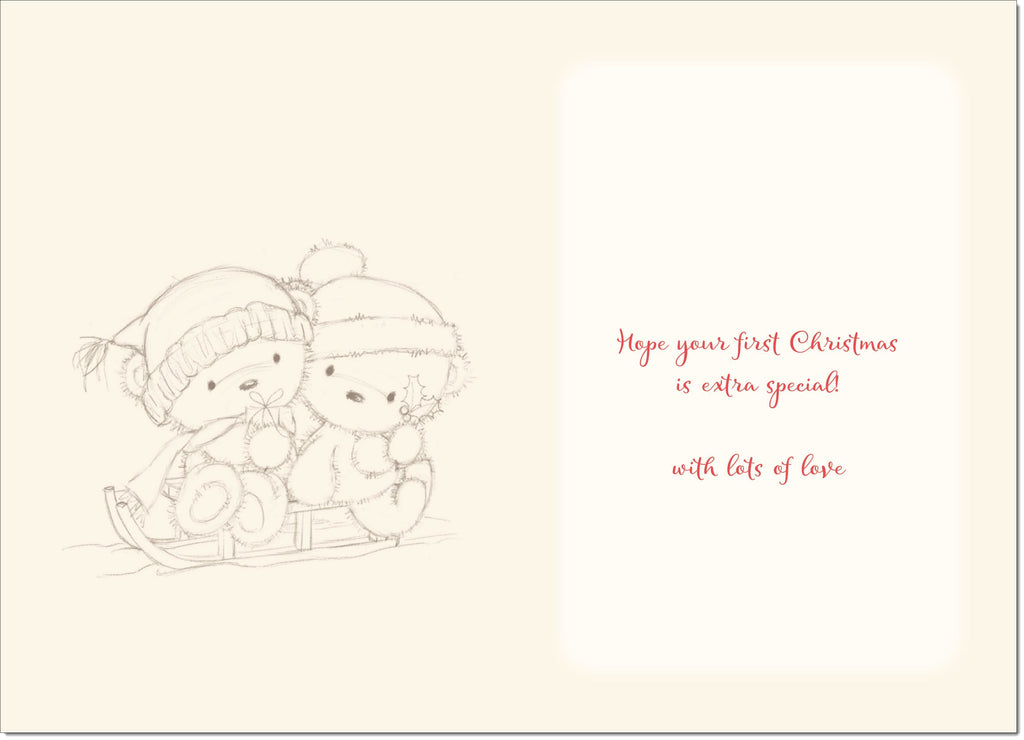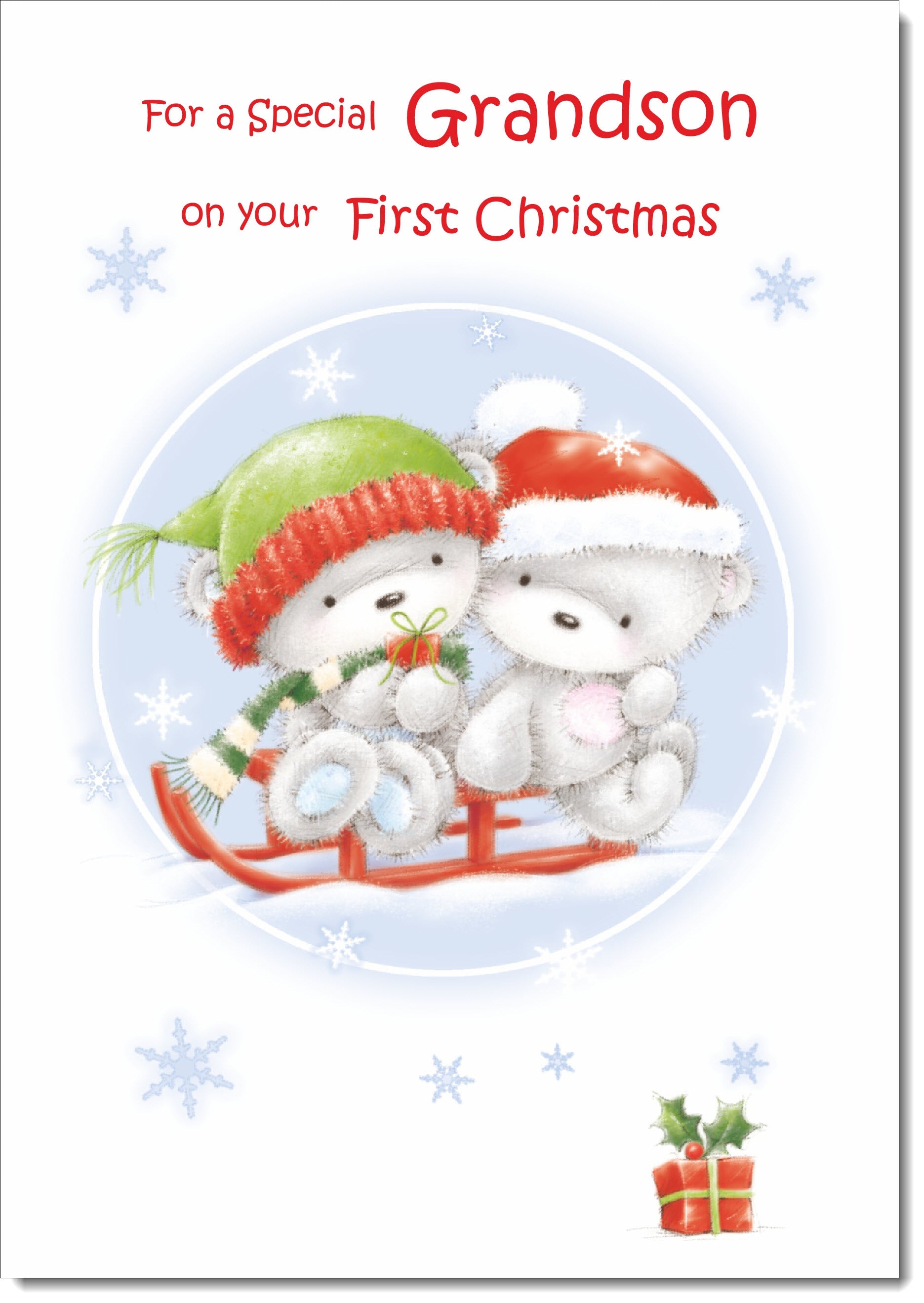 Grandsons 1st Christmas Card Cute Bears on Sled