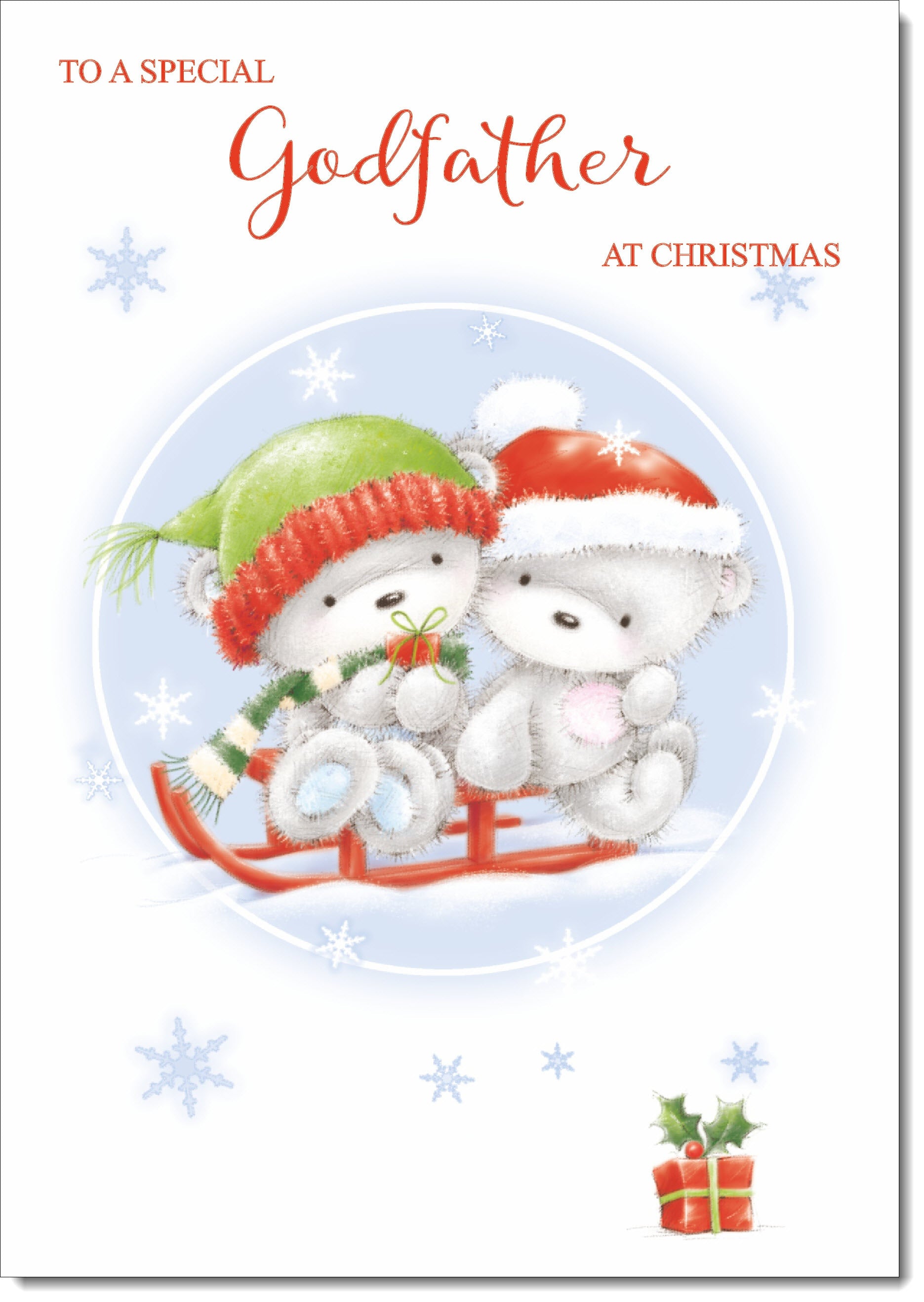 Godfather Christmas Card Cute Bears on Sled