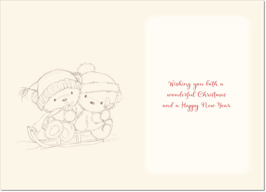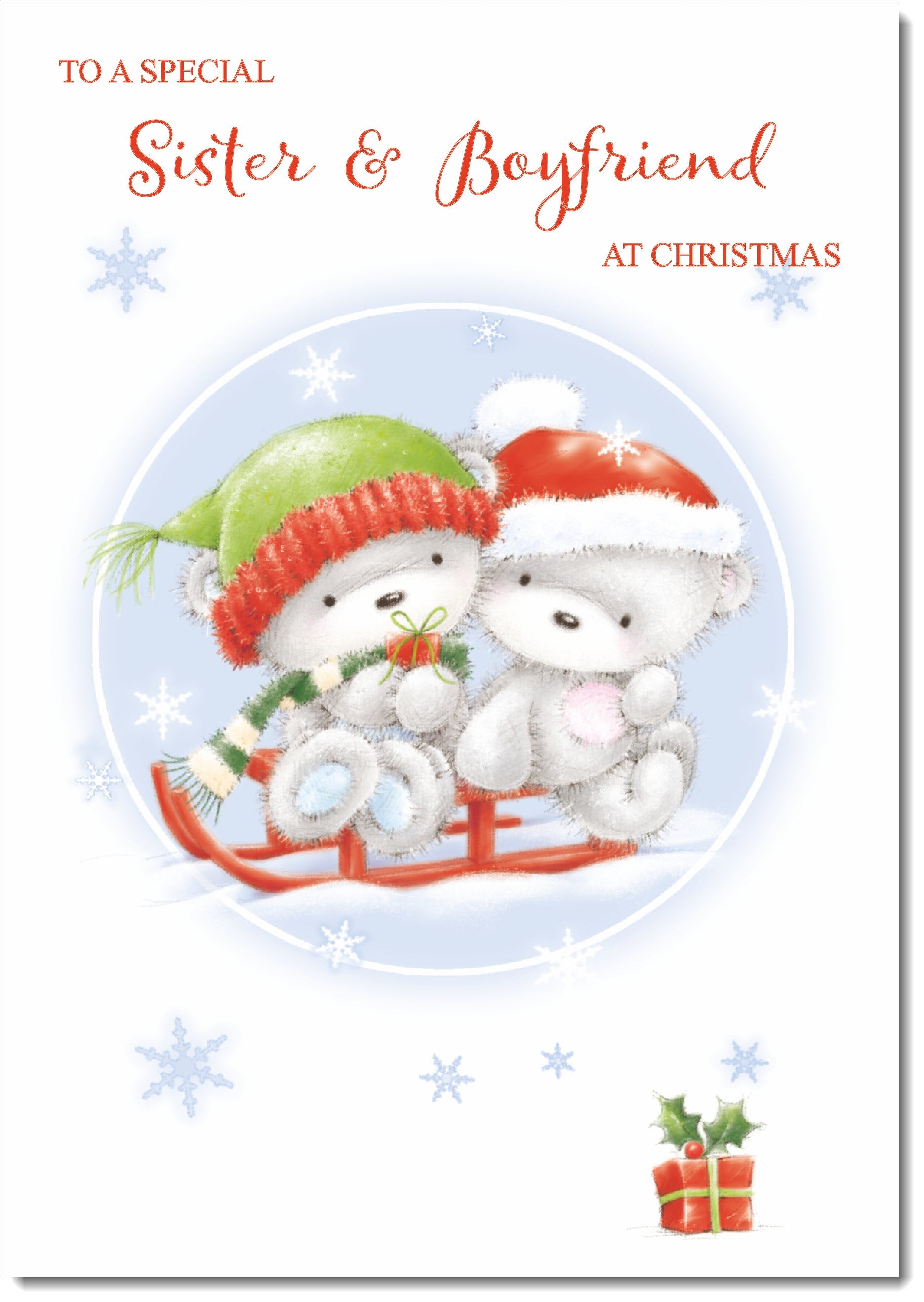 Sister & Boyfriend Christmas Card Cute Bears on Sled