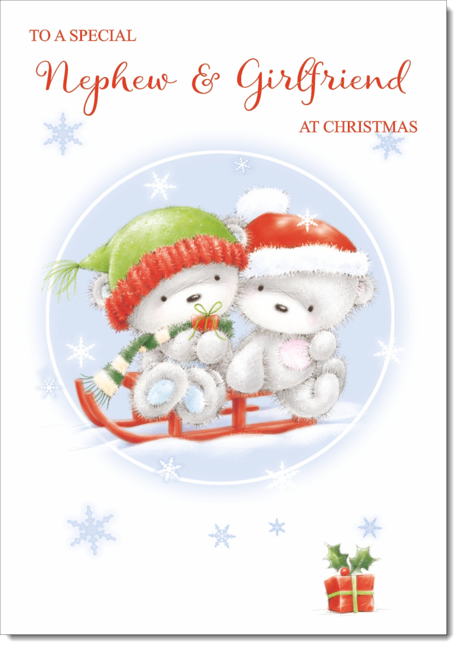 Nephew & Girlfriend Christmas Card Cute Bears on Sled