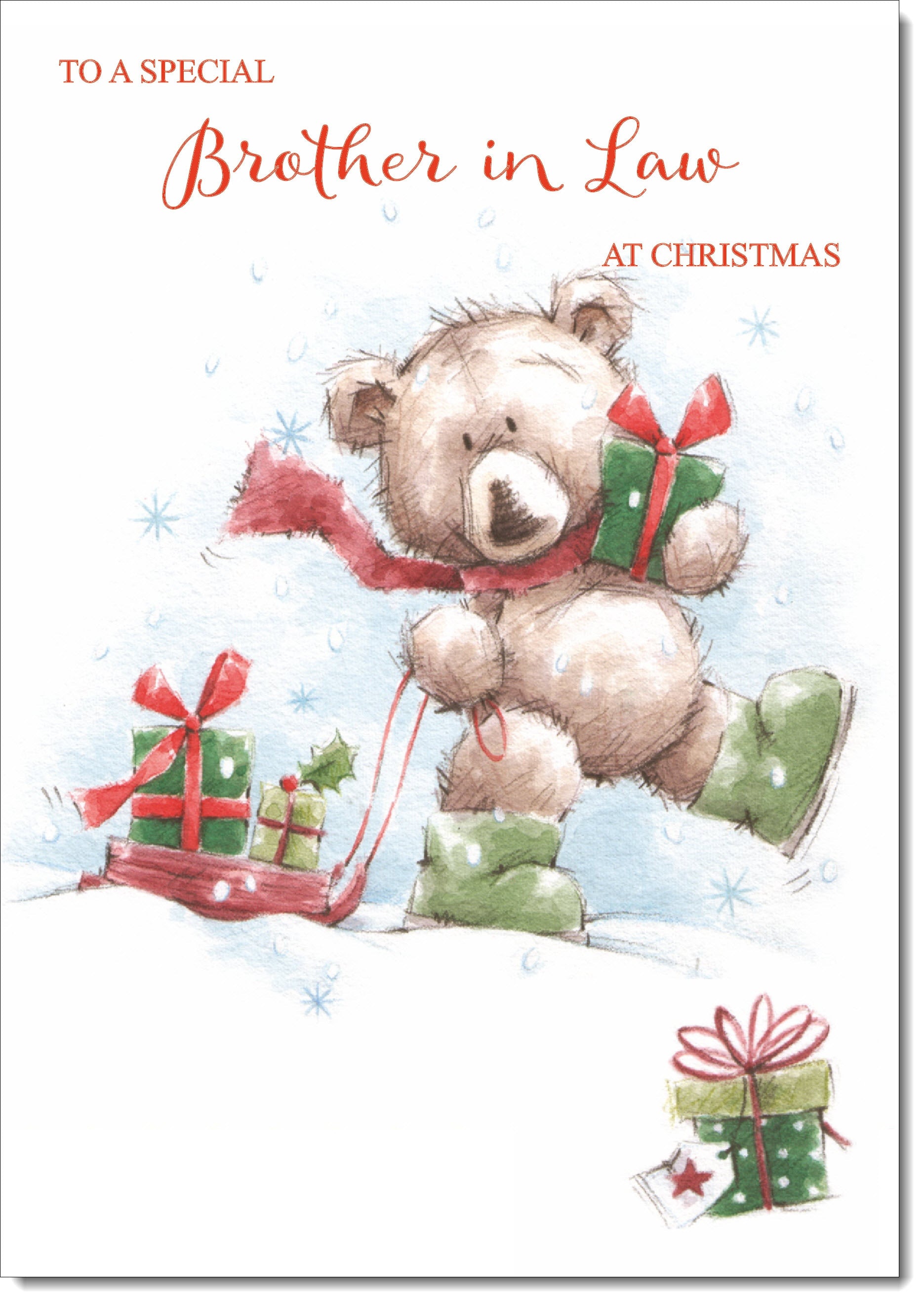 Brother-in-Law Christmas Card Cute Bear with Sled