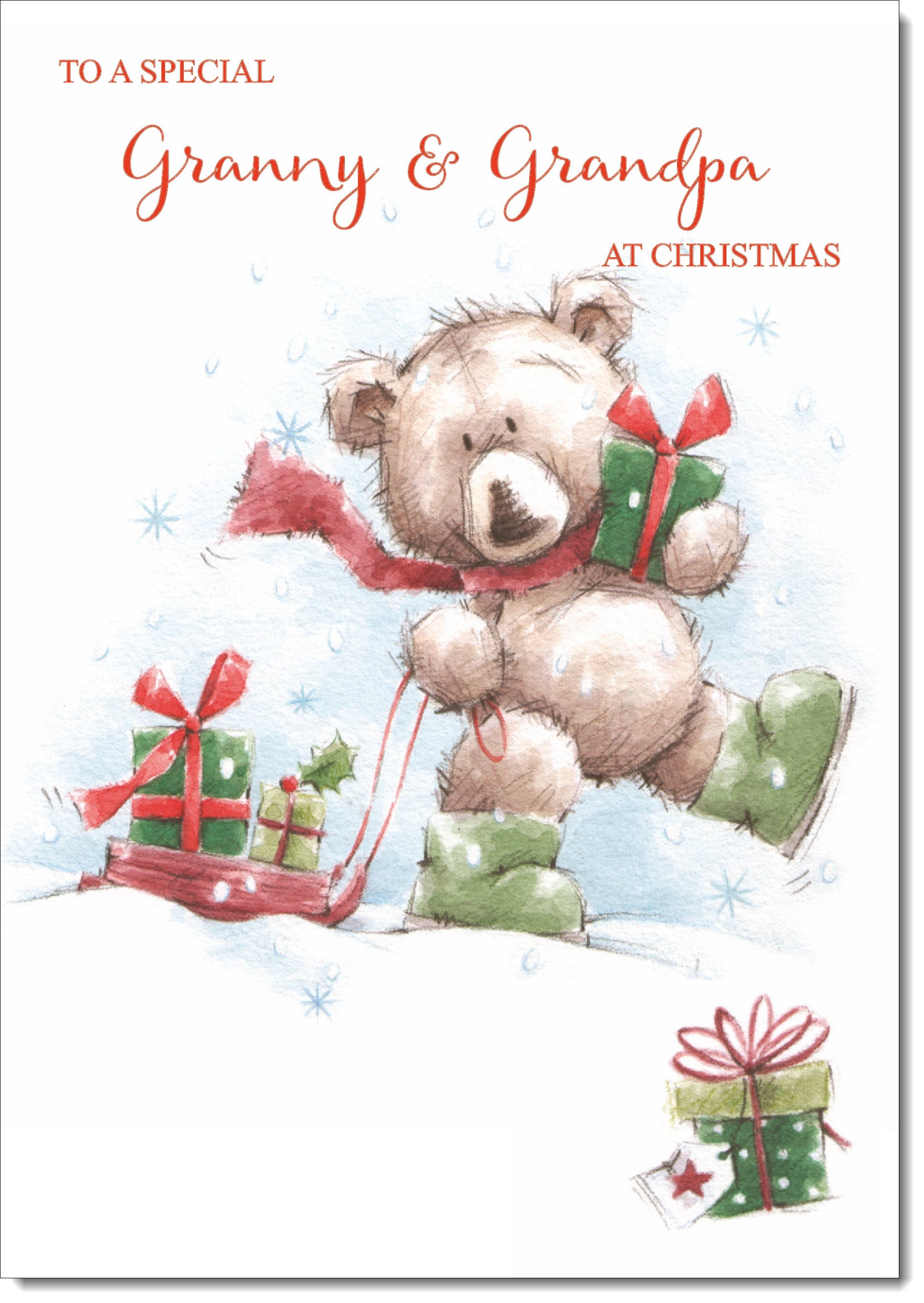 Granny & Grandpa Christmas Card Cute Bear with Sled